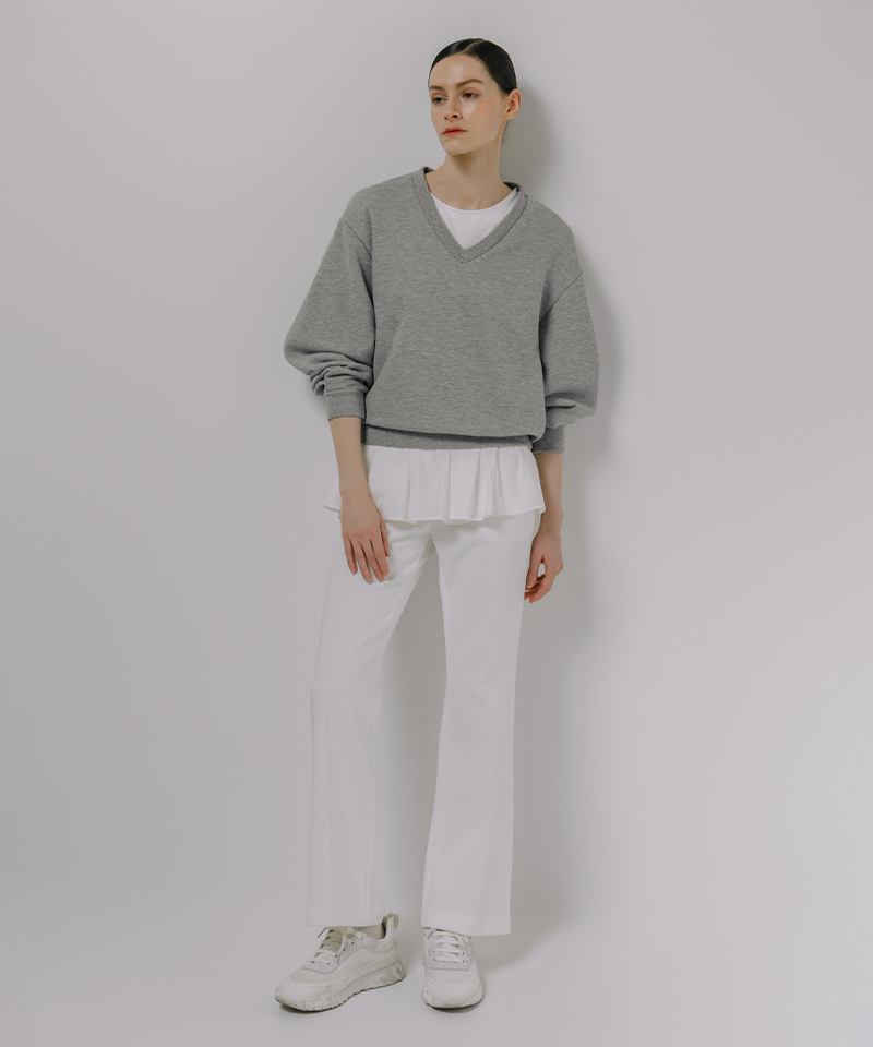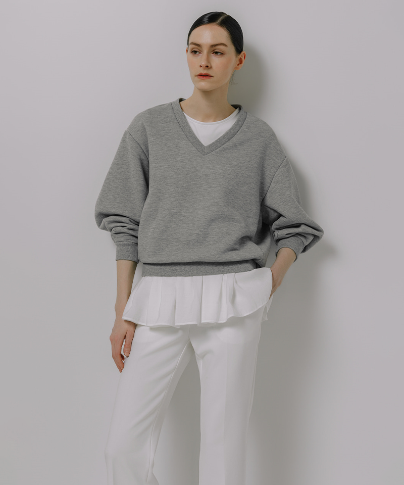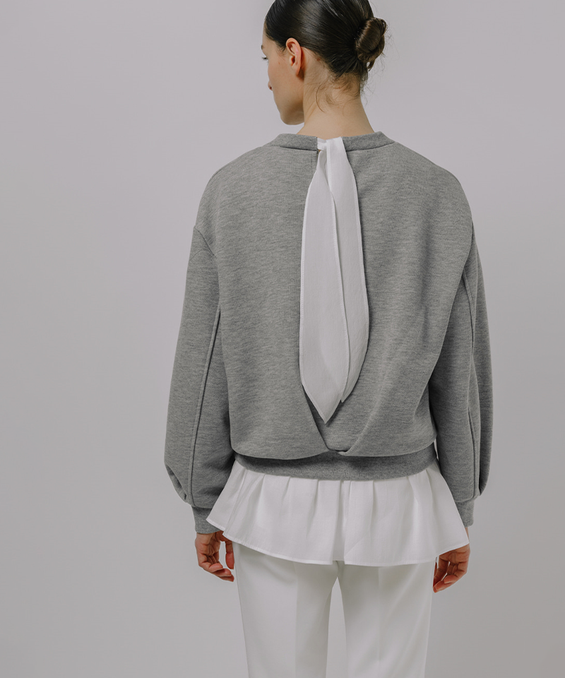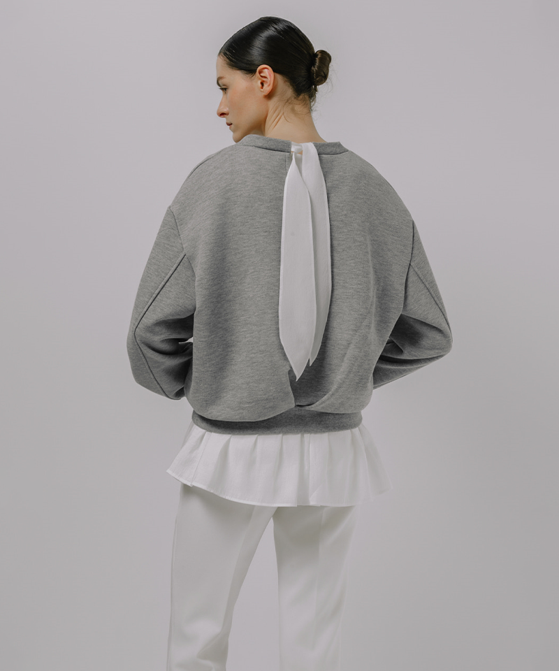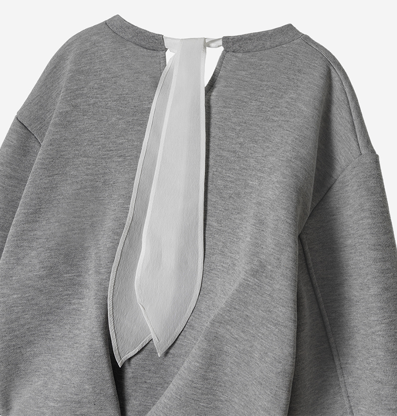 Beyond the ordinary sweatshirt — a study in balance, volume, and refined femininity.