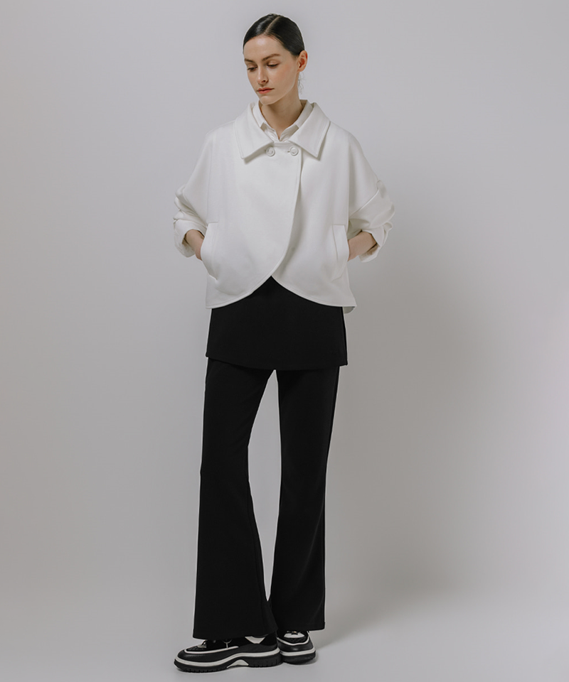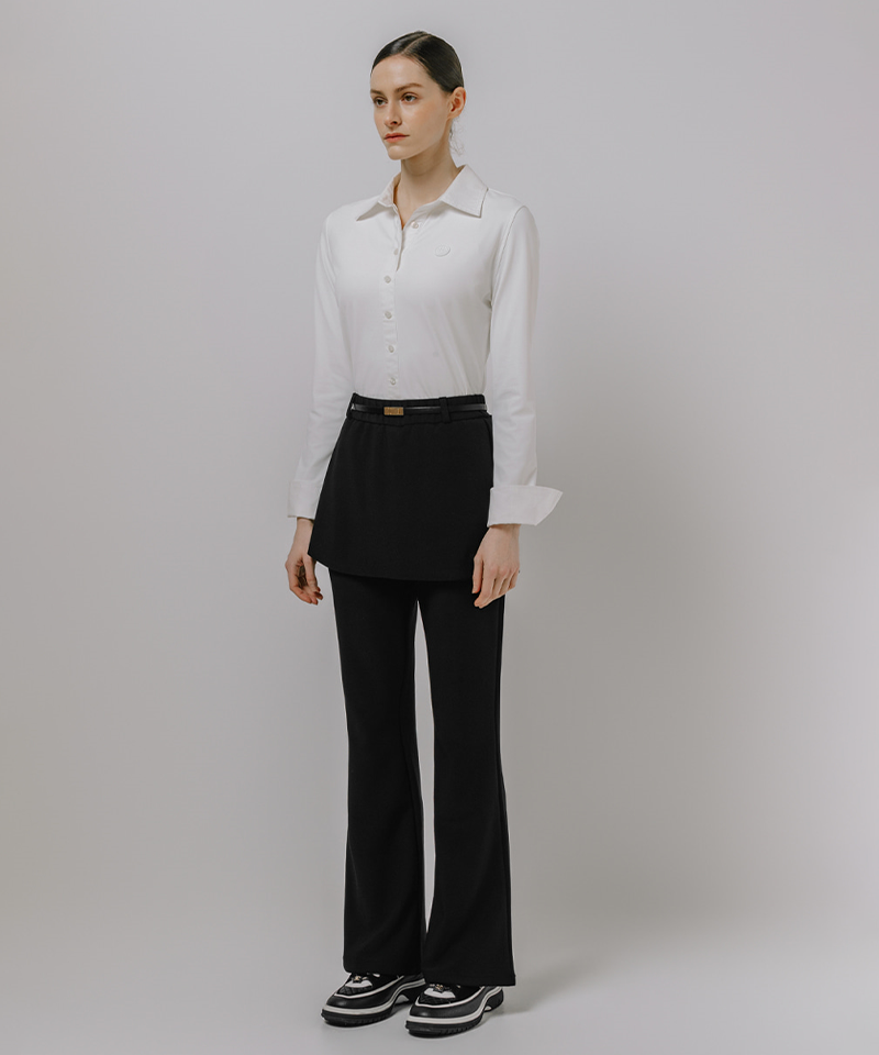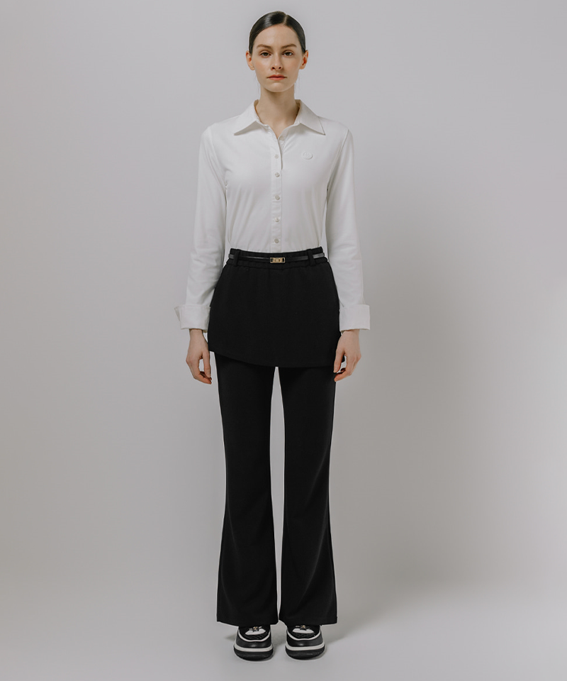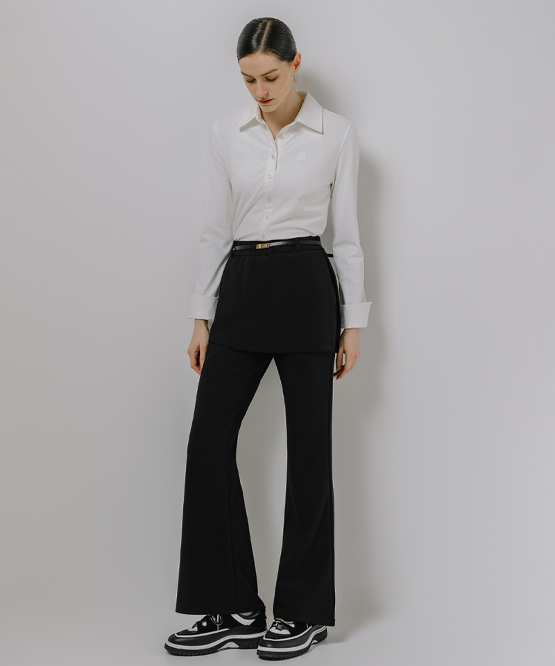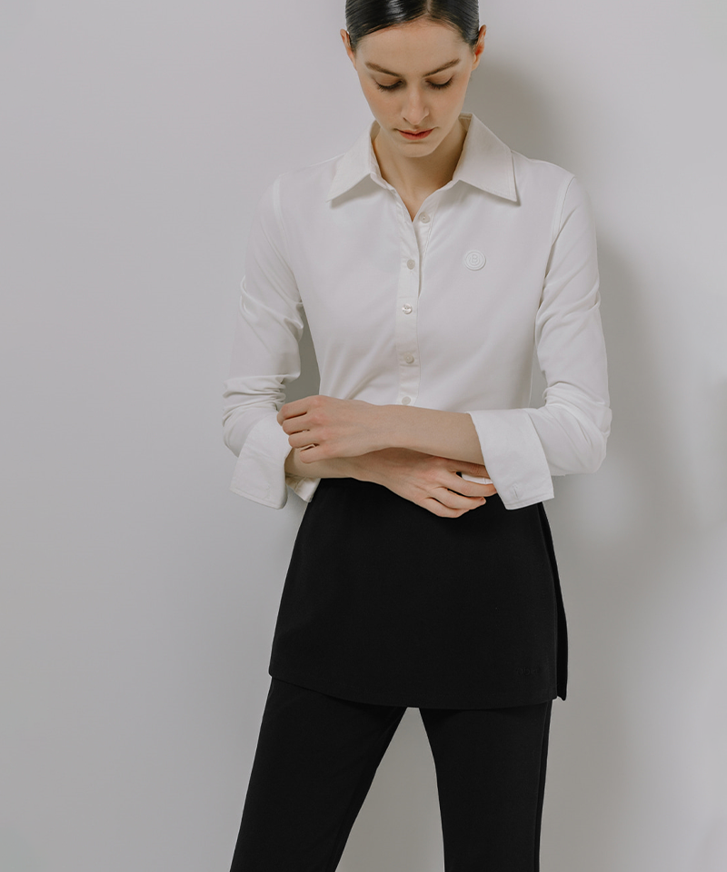 The smart, tailored design features a smooth line that naturally combines with the lower skirt to create a refined look. Using a sturdy waistband and a soft fabric, it allows for unrestricted movement and comfort. The belt loop and front detailing add a practical yet stylish element, while the OBER logo reinforces the brand identity.