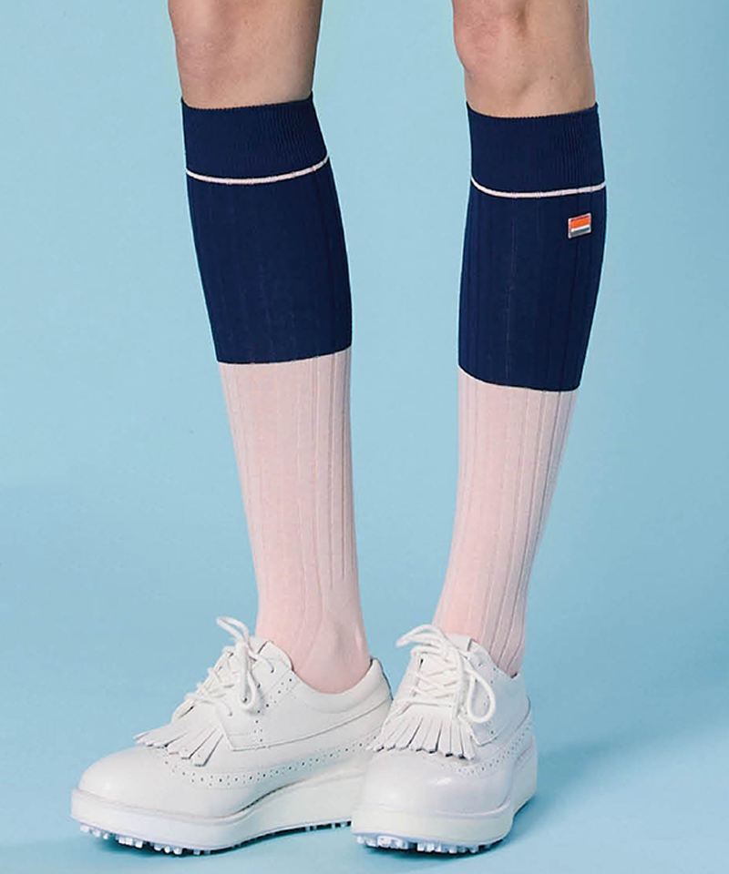 Orange Label Color Blocking Knee Socks - 4 Colors