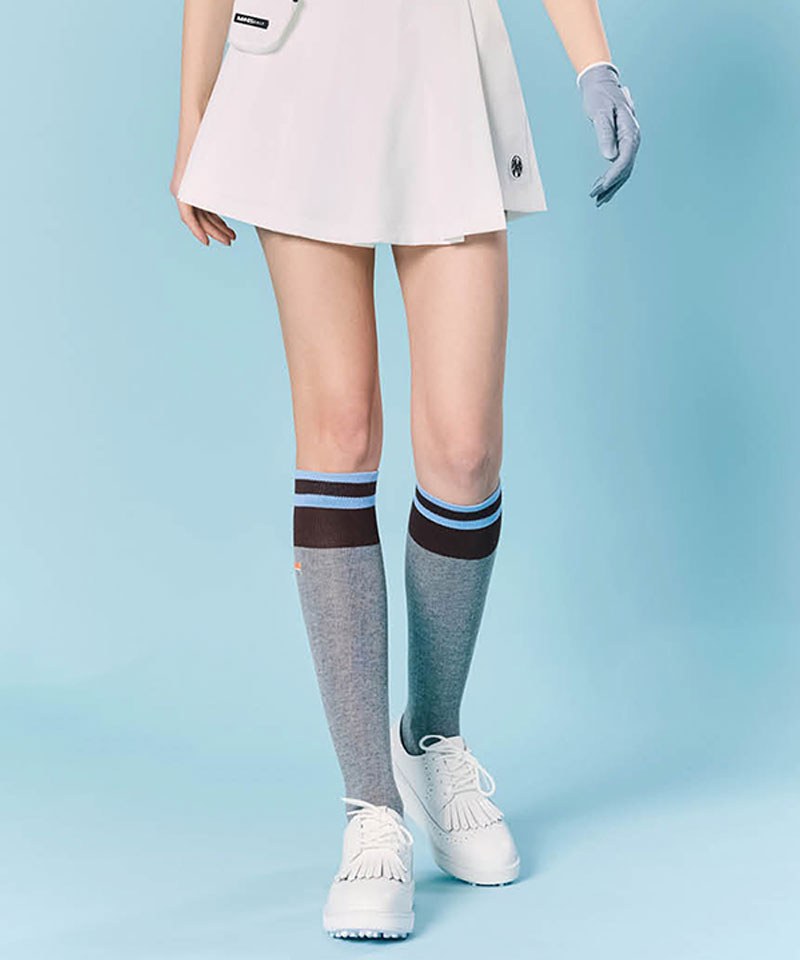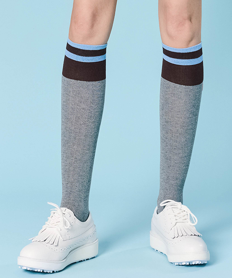 Orange Label Two-Tone Color Blocking Knee Socks - Gray