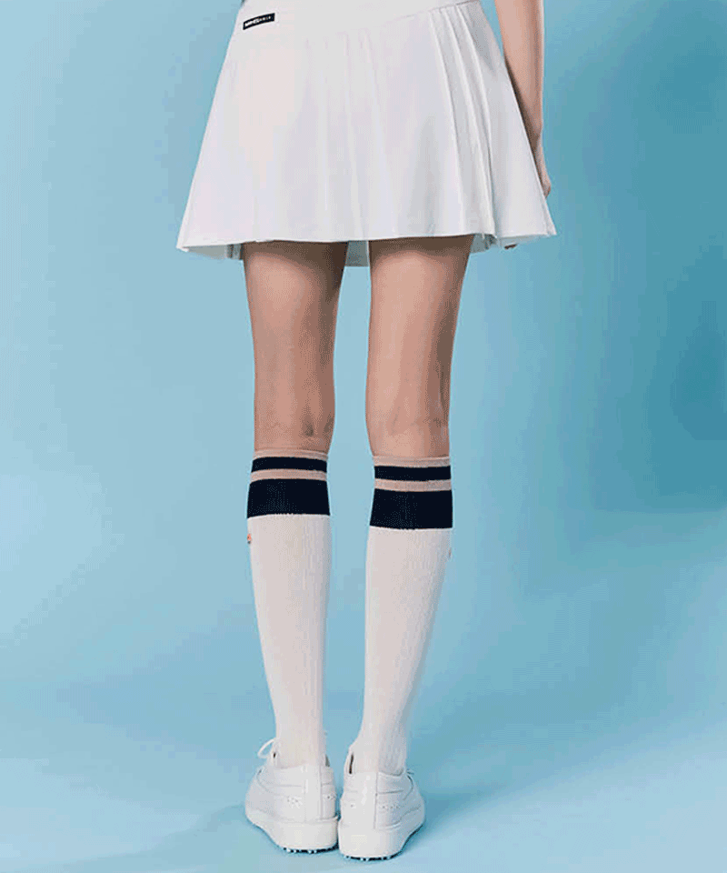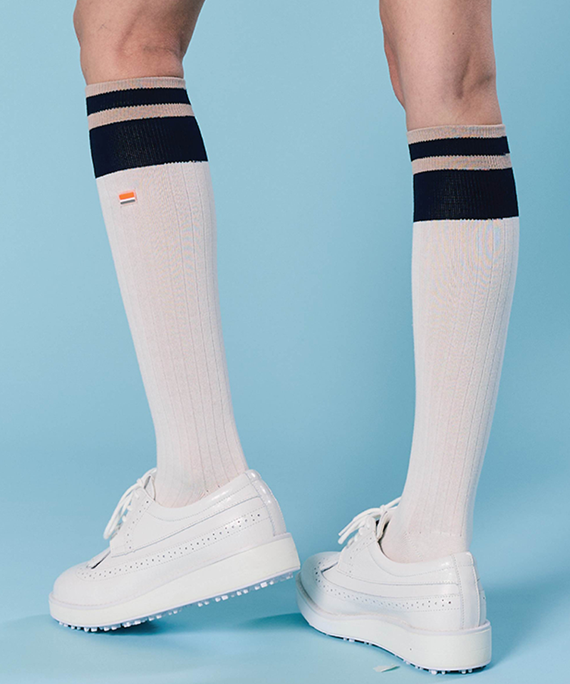 Orange Label Two-Tone Color Blocking Knee Socks - White