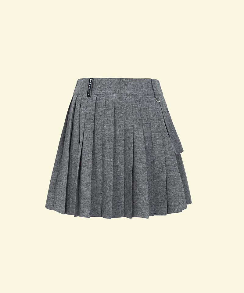 Orange Label Wrap Pocket A-Line Pleated Skirt - Gray