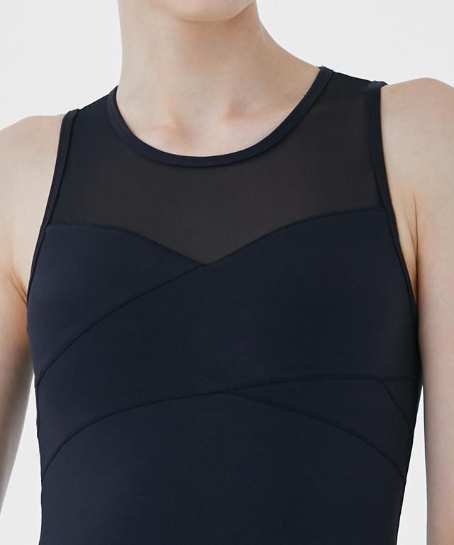 This tank design support top creates a more voluminous look with on-point overlay cutting lines and mesh fabrics starting from the upper chest to the middle of the back. Soft and elastic fabrics will make your stay in this top during all types of workouts.