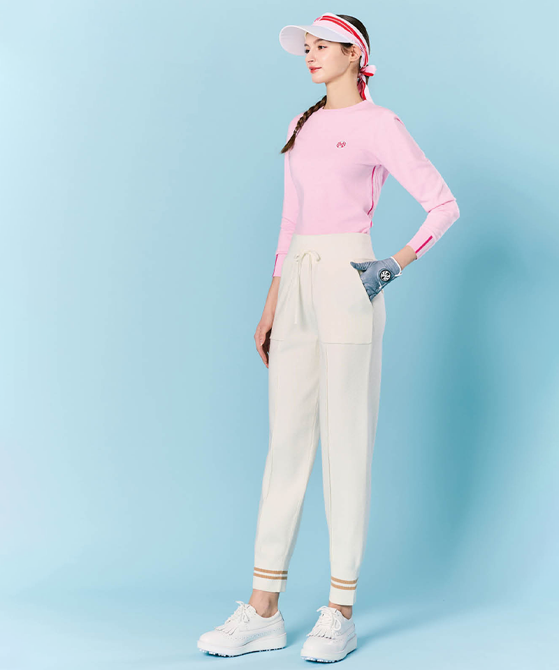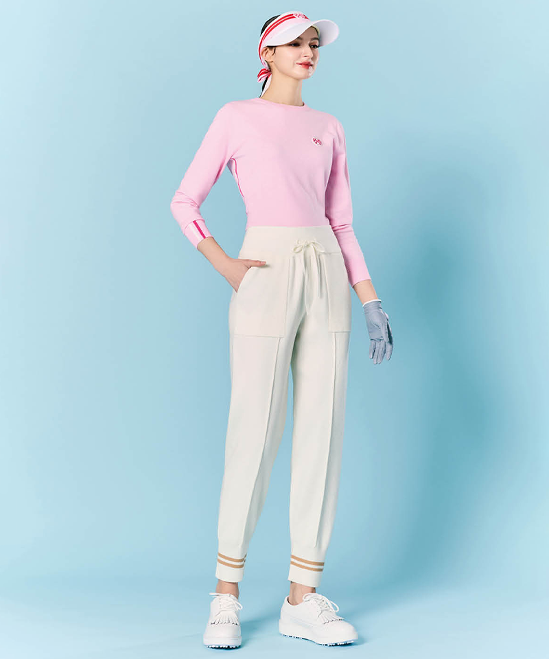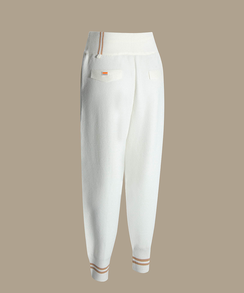Refined pintuck-line knit joggers that blend comfort with contemporary style. The soft knit fabric and tapered silhouette offer all-day wearability, while subtle pintuck detailing elevates the look. Elastic cuffs provide a polished finish. Available in two versatile colors for effortless everyday wear.