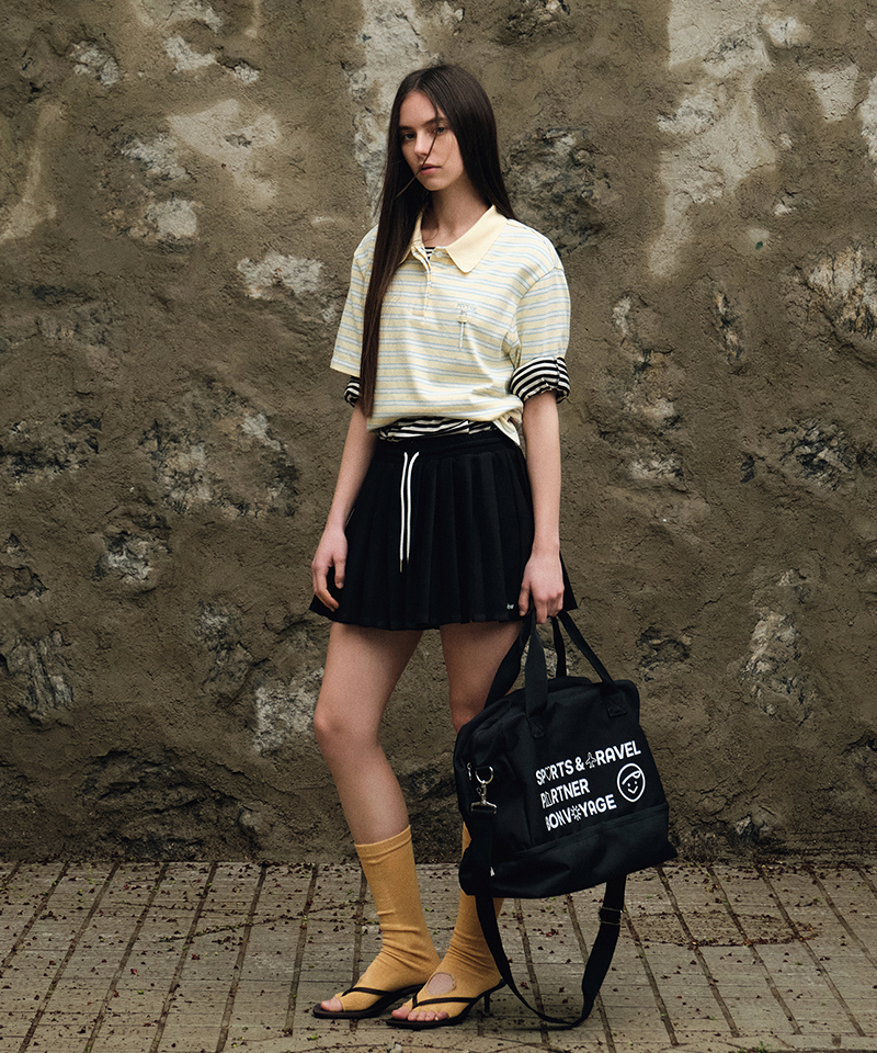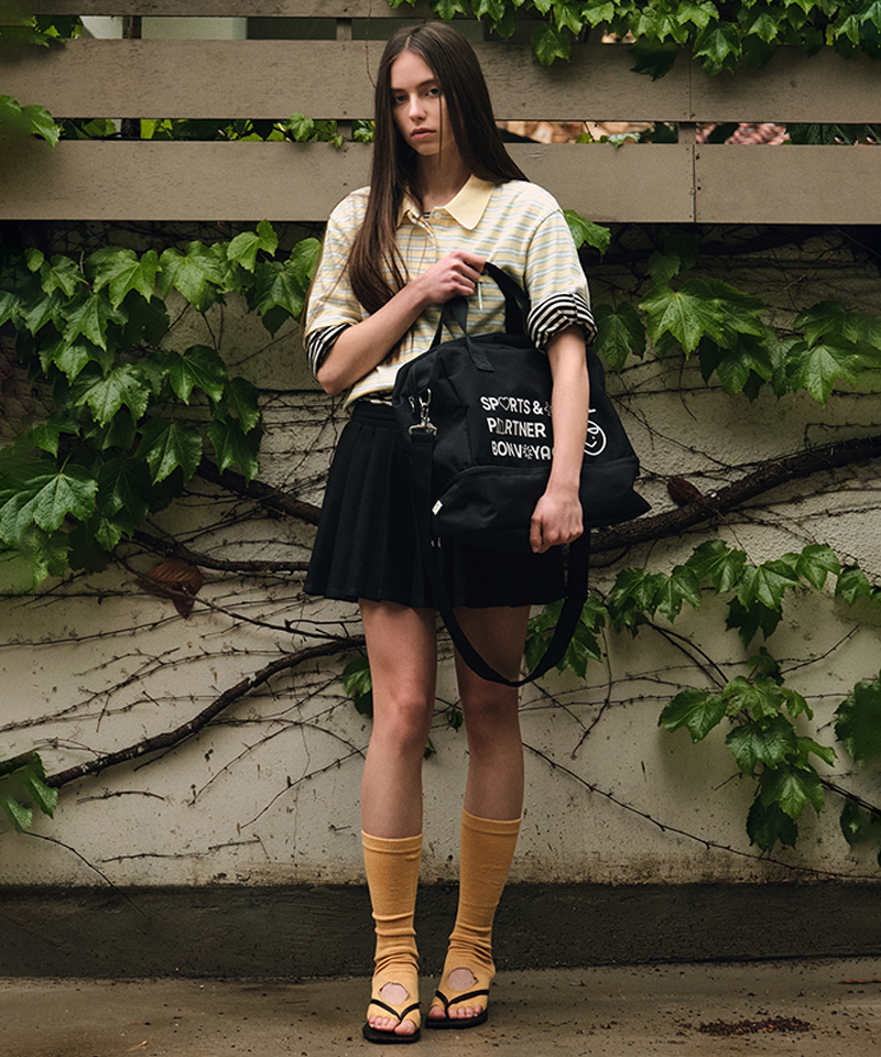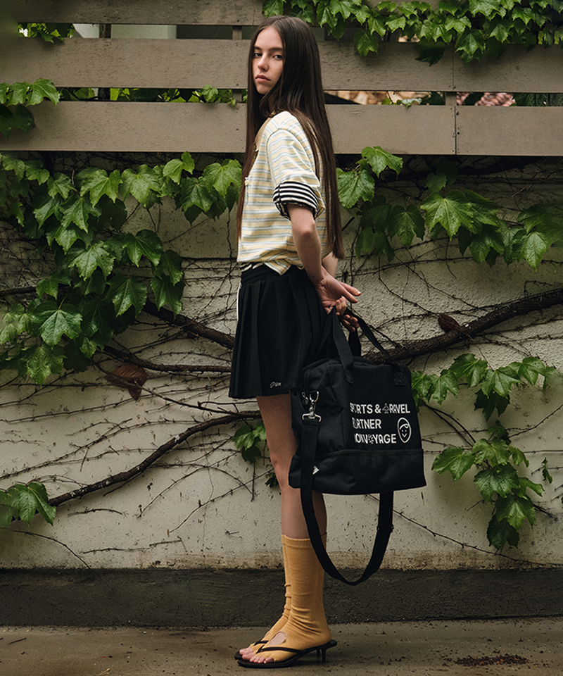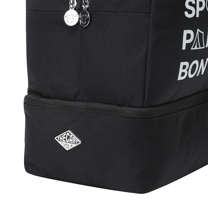 Crafted from durable yet lightweight materials, this versatile bag is designed to support both travel and everyday activities. It features exclusive “Travel Partner” graphic artwork on the front, along with signature Cart Golf rubber waffle detailing. Thoughtfully constructed, it includes separate compartments for wet and dry items, an internal pocket for organization, and a dedicated shoe storage area with mesh eyelets for ventilation. The detachable shoulder strap, sturdy handle, and Piv'vee smile logo zipper add both function and style, making it a must-have companion for travel, workouts, and daily use.