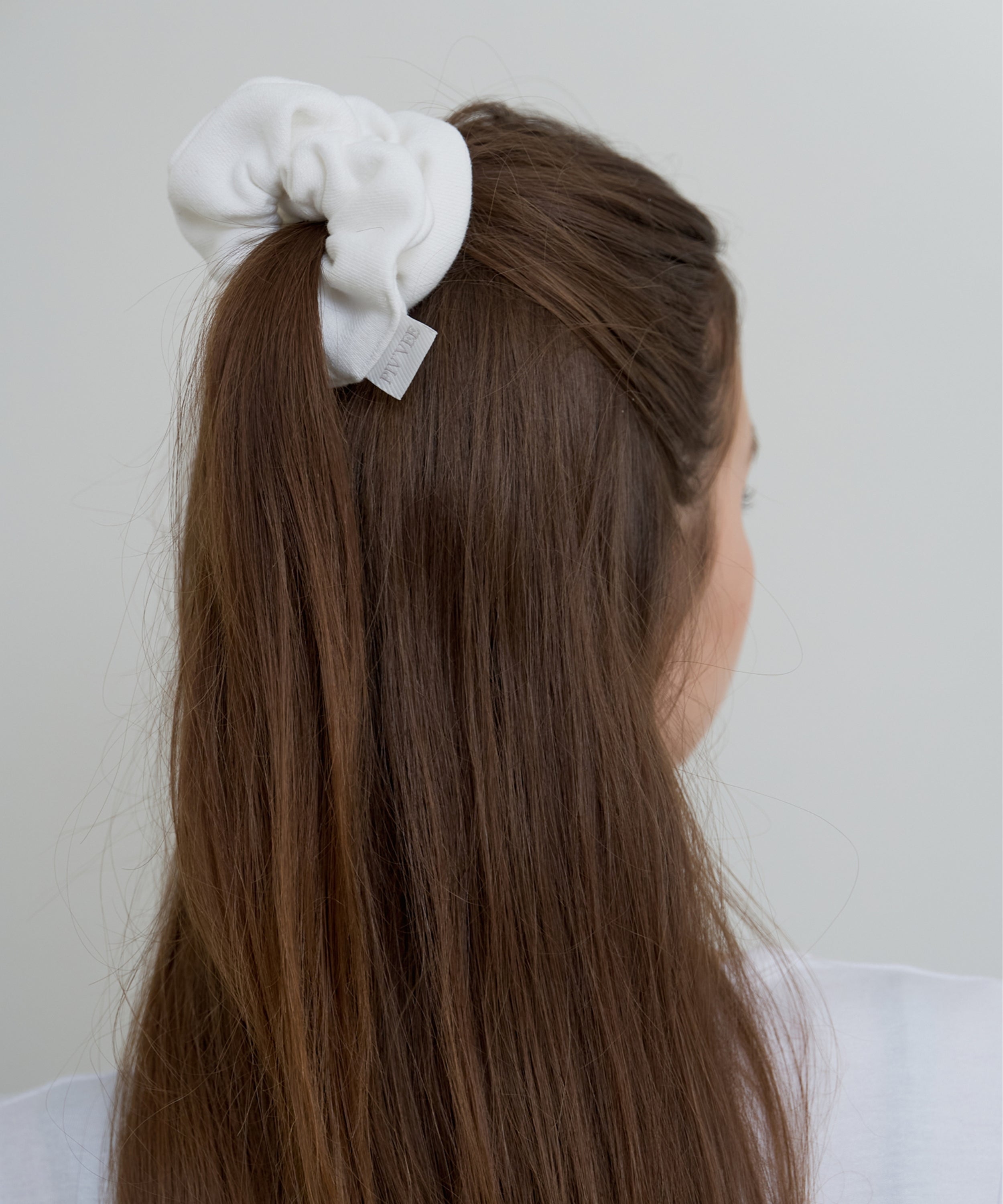 Crafted from soft 100% cotton, this scrunchie features a clean, classic size and comes in elegant, versatile colors. Accented with a distinctive PvB woven label, it serves as a refined accessory to elevate any look.