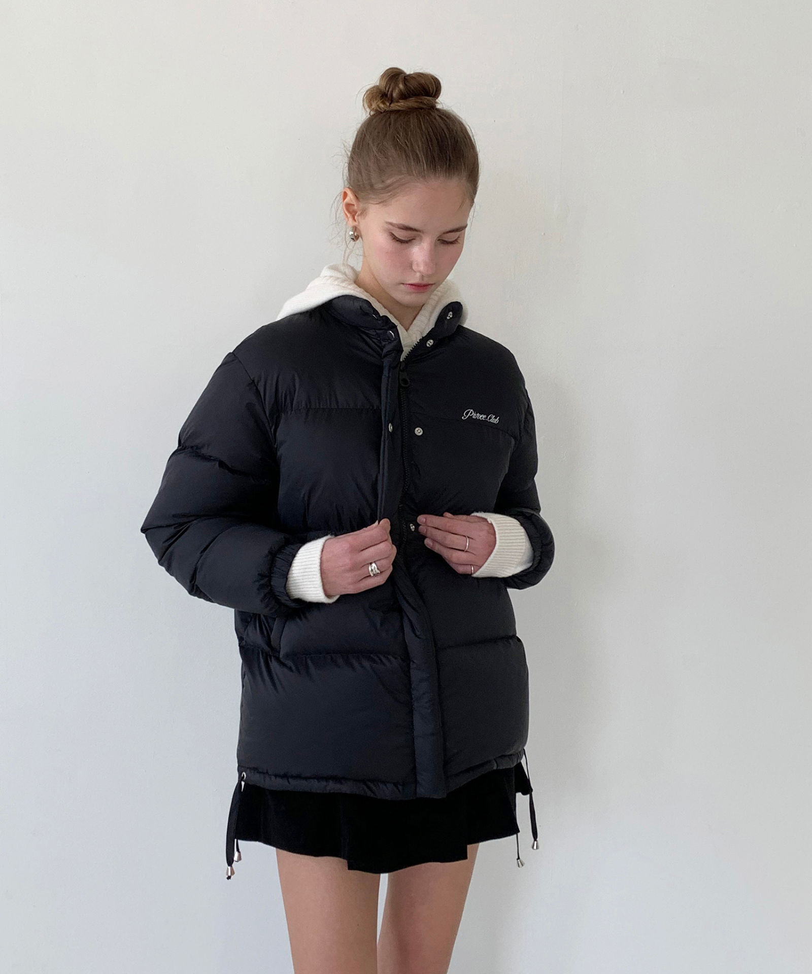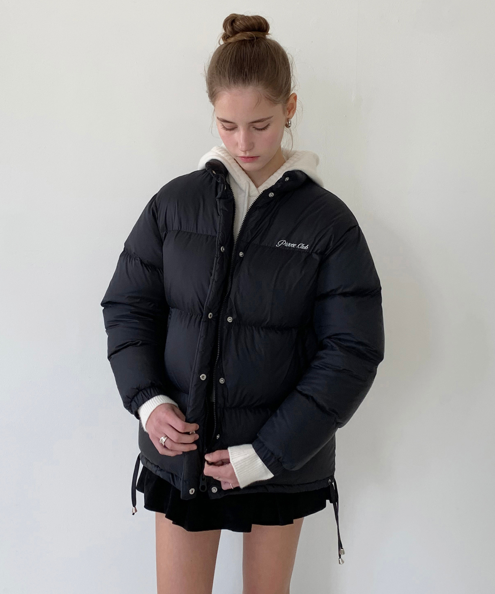 Filled with premium duck down, this jacket features a lustrous glossy fabric that adds a touch of elegance. The front is accented with a subtle PvB logo print. Adjustable elements at the inner waist and hem allow for a tailored fit, enhancing versatility in styling. Ideal for both everyday wear and outdoor adventures, it combines practical warmth with a refined, casual aesthetic.
