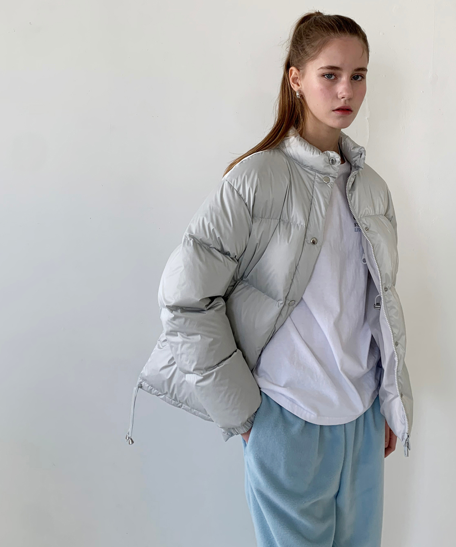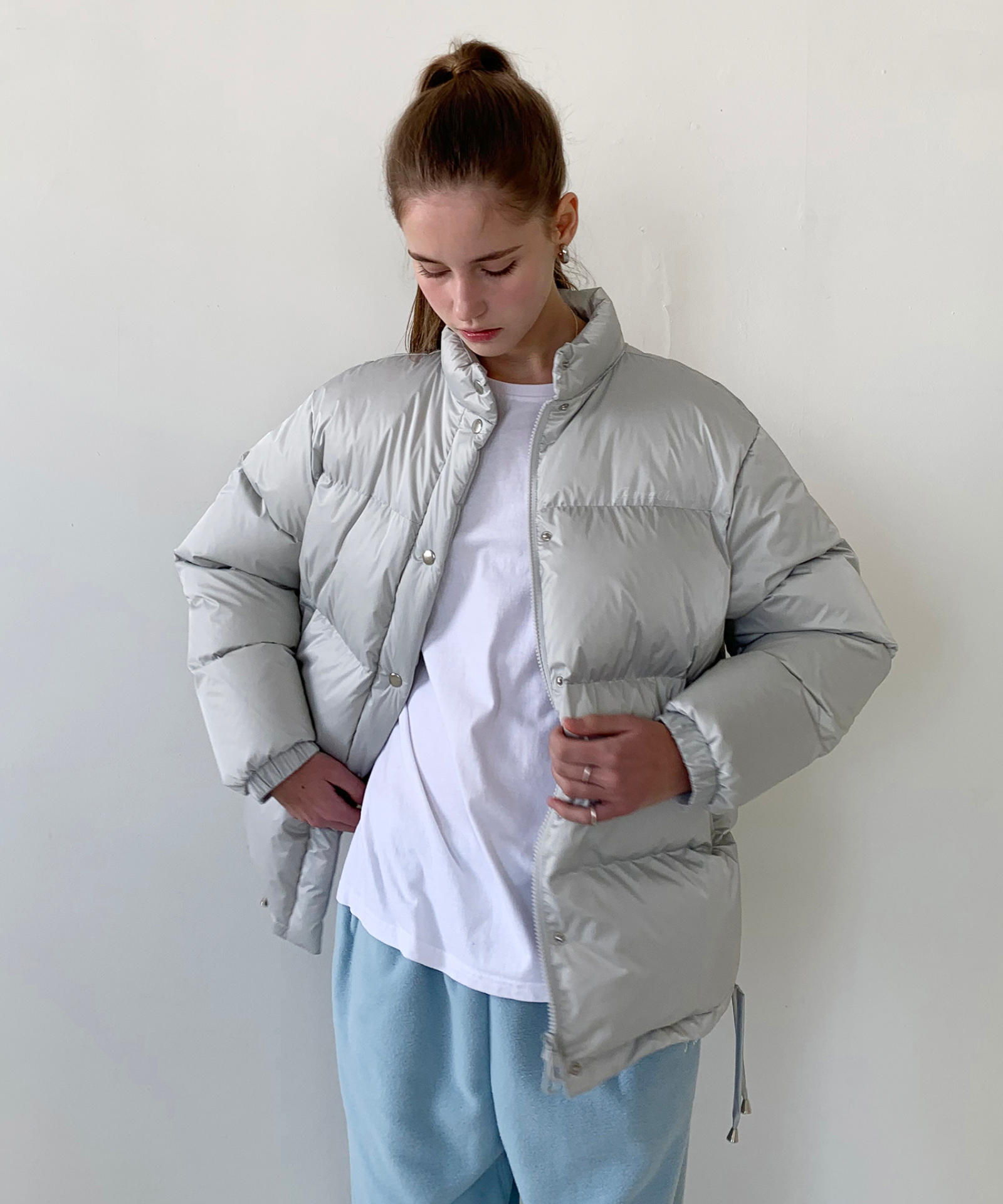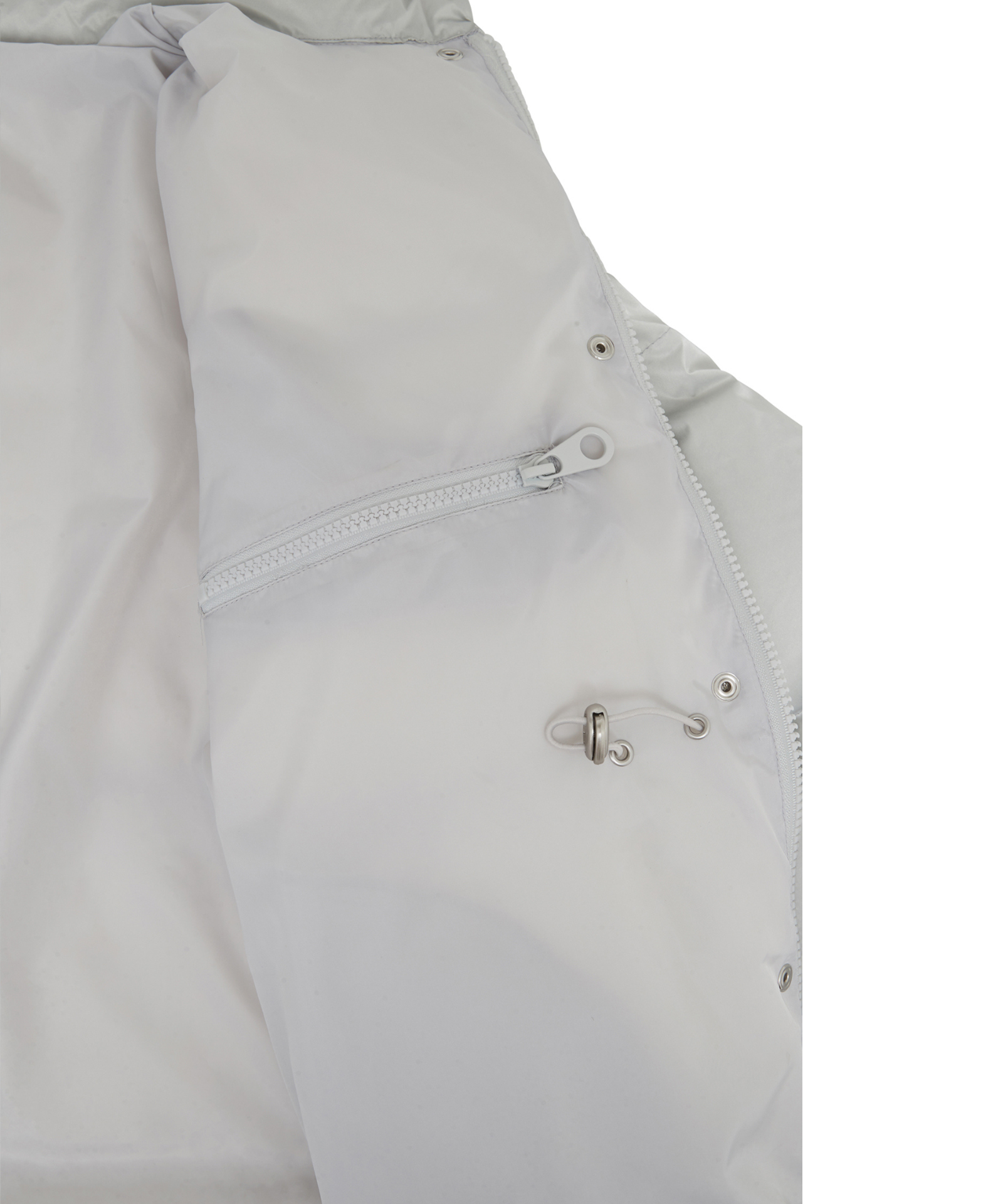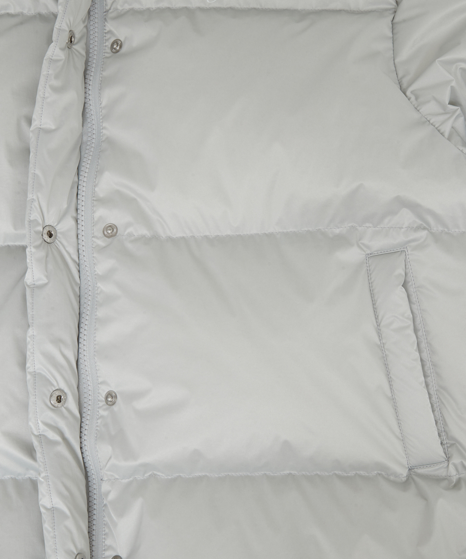 Filled with premium duck down, this jacket features a lustrous glossy fabric that adds a touch of elegance. The front is accented with a subtle PvB logo print. Adjustable elements at the inner waist and hem allow for a tailored fit, enhancing versatility in styling. Ideal for both everyday wear and outdoor adventures, it combines practical warmth with a refined, casual aesthetic.