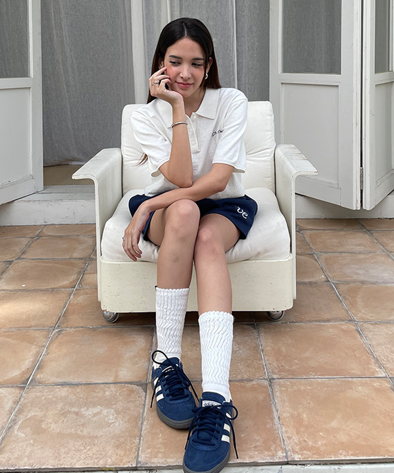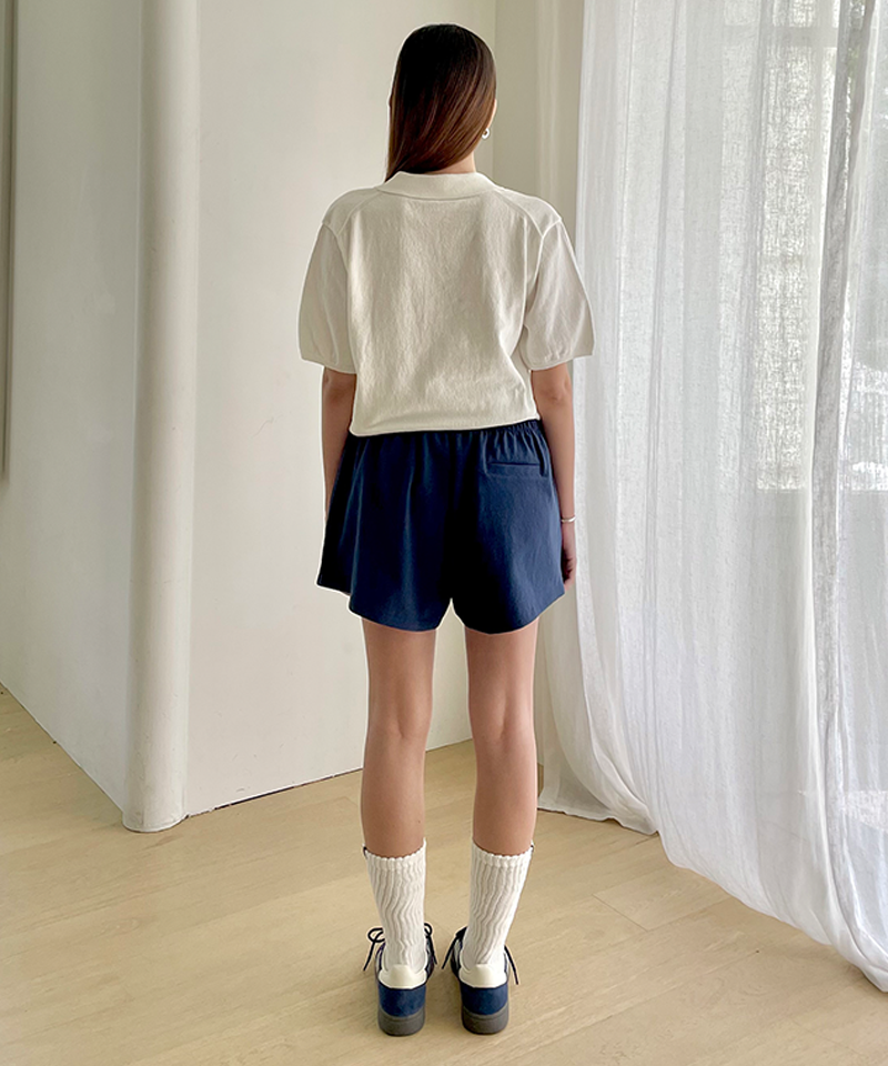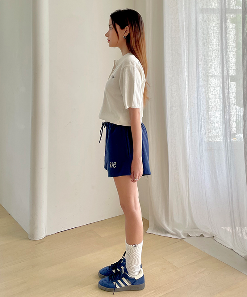 These cotton shorts are made from solid-textured cotton fabric and feature front lettering embroidery for a subtle design detail. The elastic waistband ensures a comfortable fit, while the waist string adds a sporty touch. Designed with both side and back pockets, these shorts are versatile and suitable for everything from daily wear to golf and tennis looks.