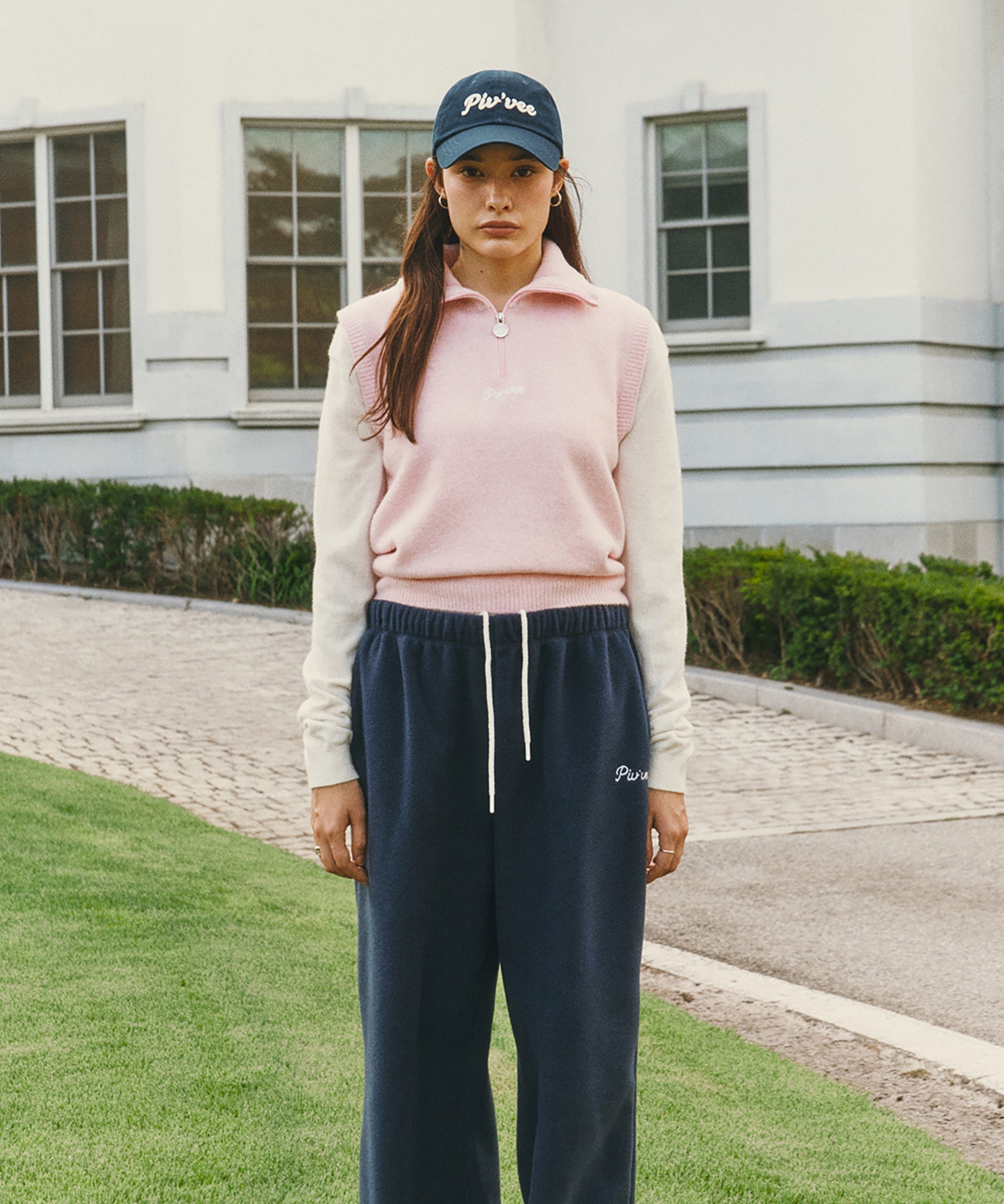 This windproof knit vest features a front zipper adorned with PvB lettering embroidery and a striking giant logo jacquard on the back. Lined for extra warmth and wind resistance, its semi-zip design offers adjustable comfort—zip up for coziness or unzip for breathability. Lightweight and flexible, it suits both athletic activities and everyday wear. Please note, the multi-thread yarn may naturally contain slight impurities, which are not defects but characteristic of the material.