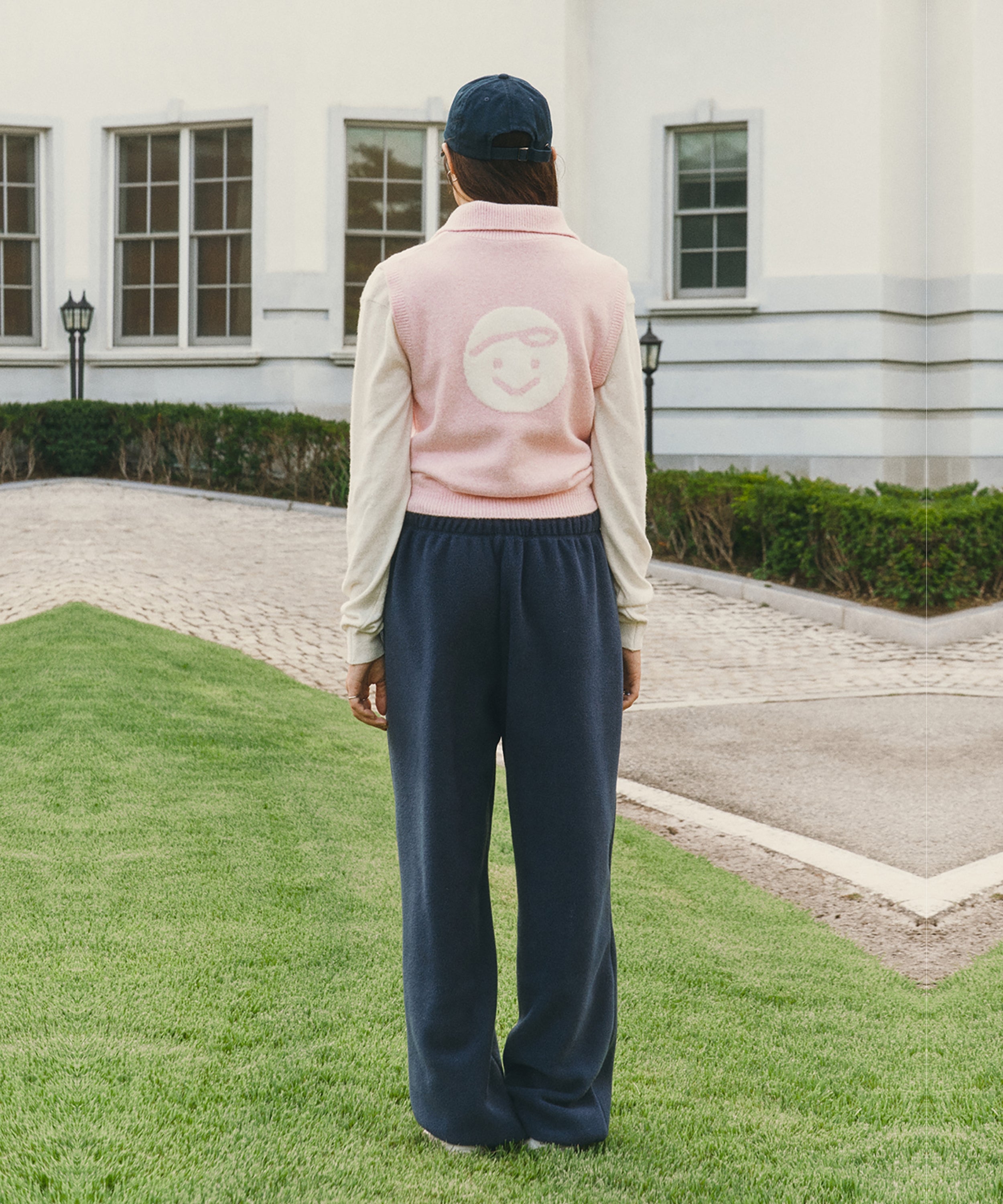 PIV'VEE Giant Smiley Windproof Knit Vest Bubble Pink