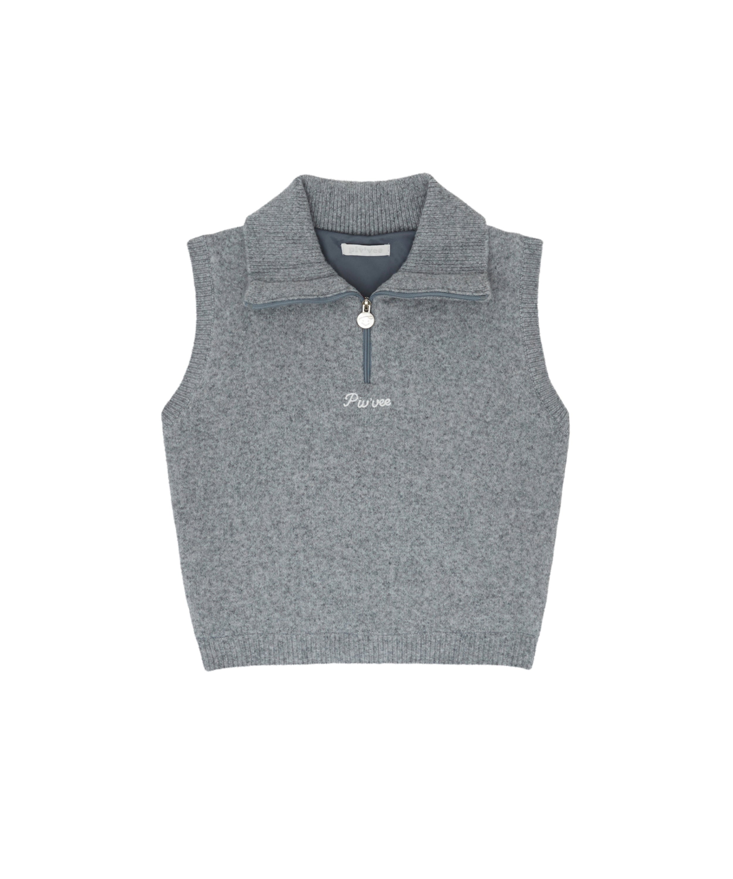 PIV'VEE Giant Smiley Windproof Knit Vest Heather Gray