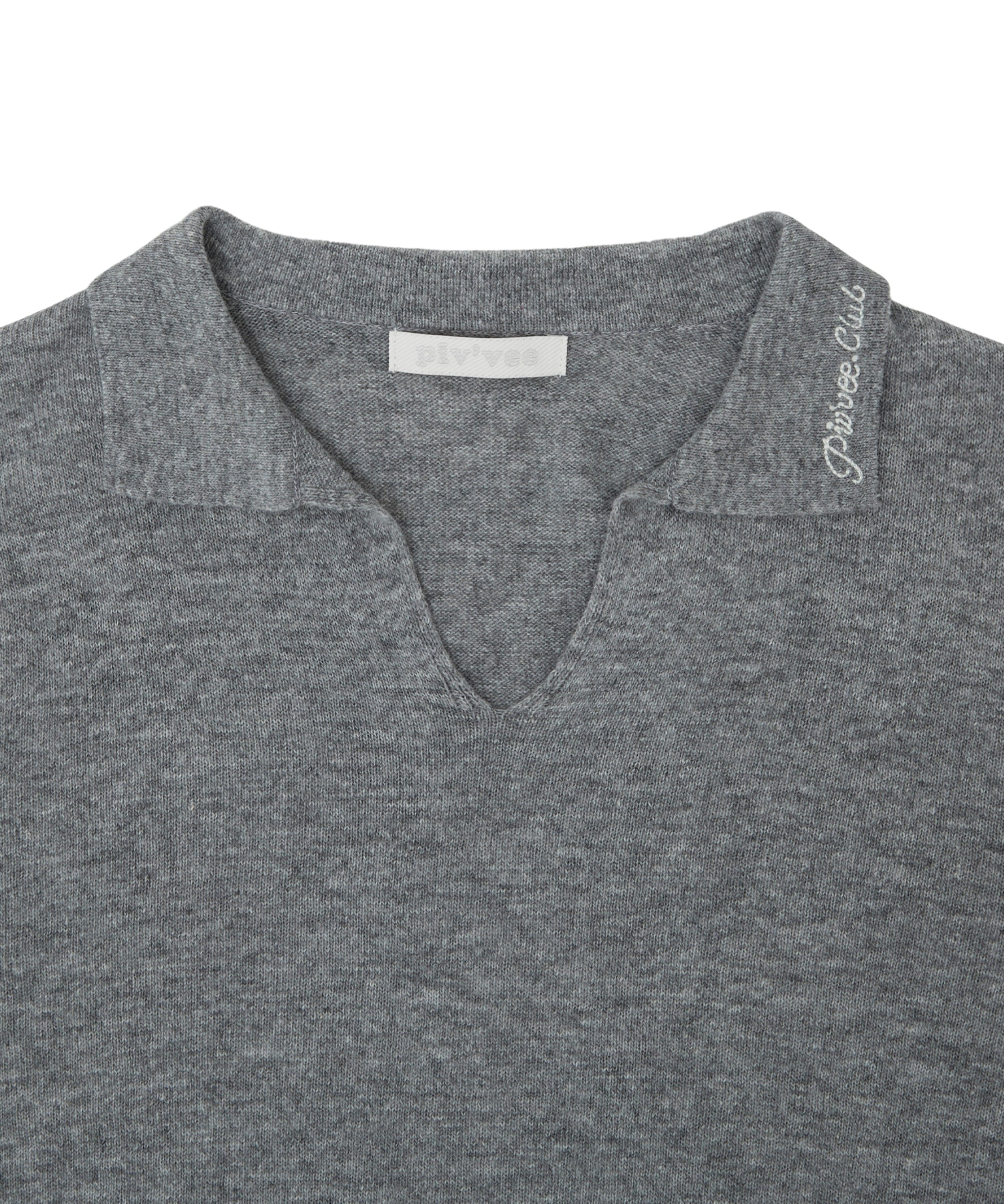 PIV'VEE Open Collar Knit Pullover Snow Grey