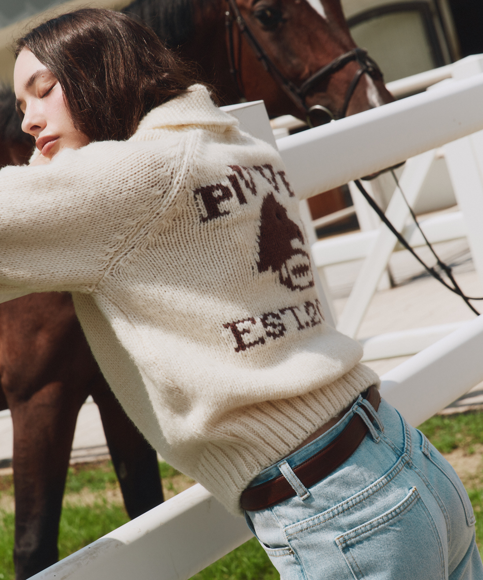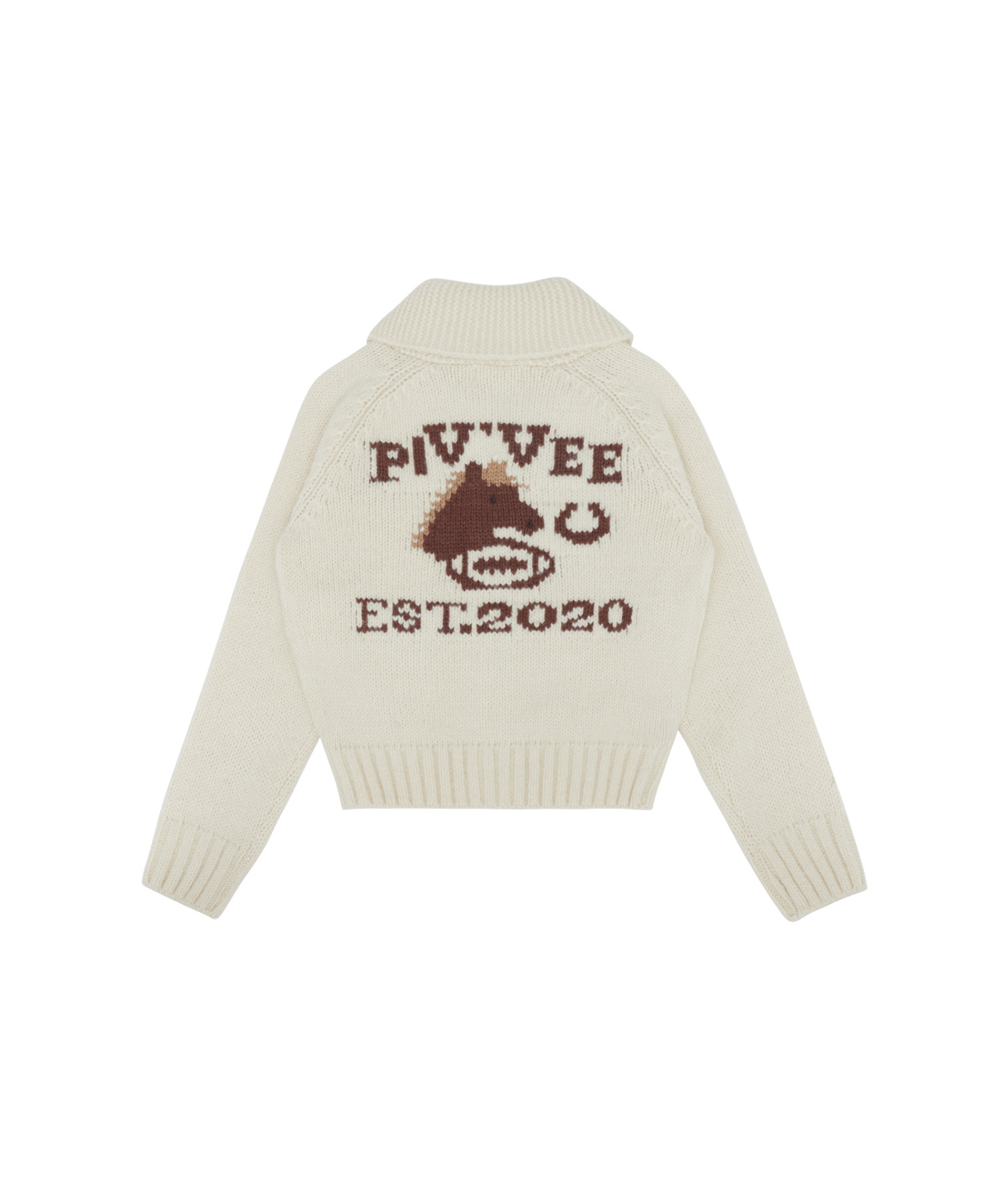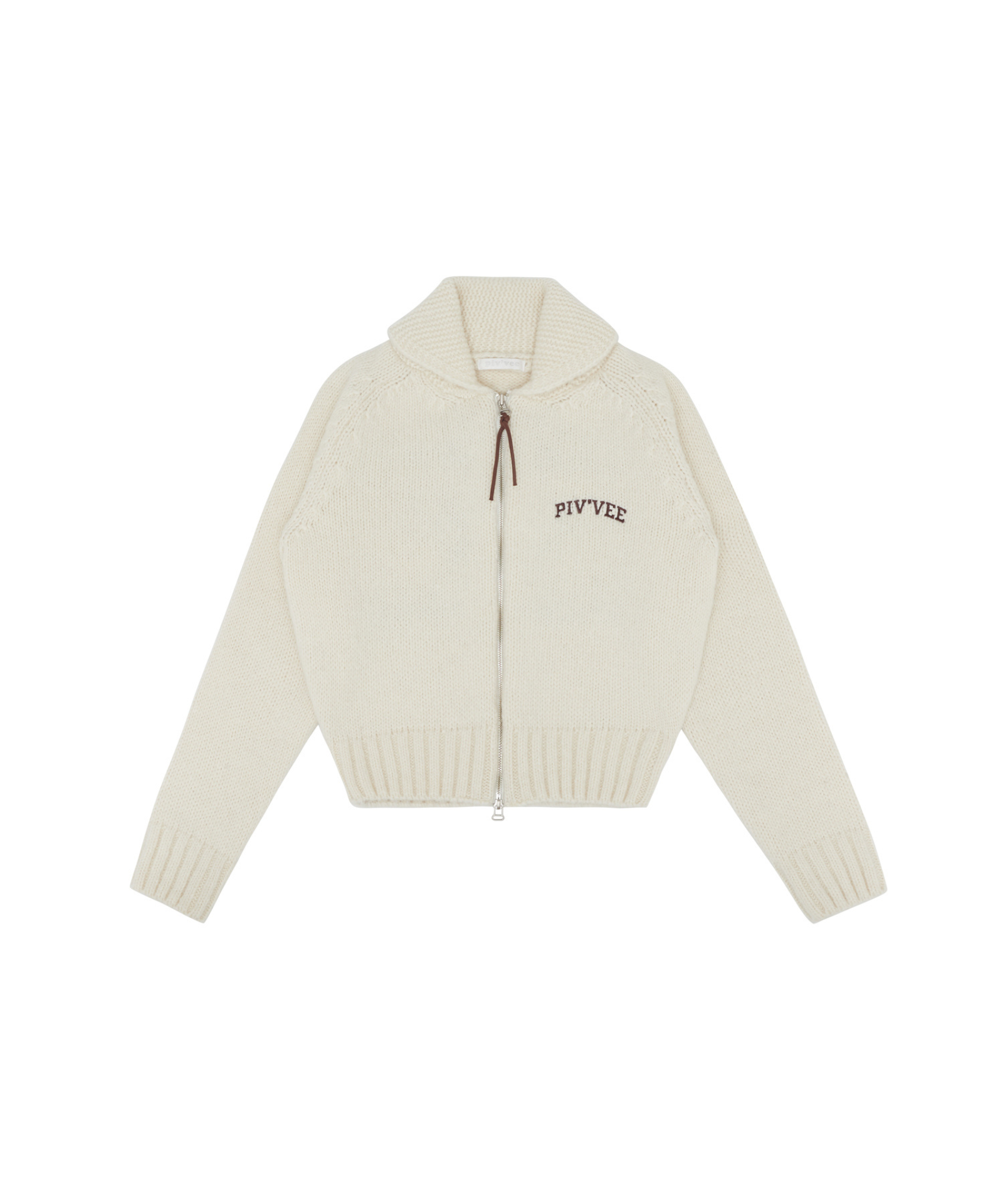 PIV'VEE Pony Jacquard Zip-up Cardigan Sand Beige