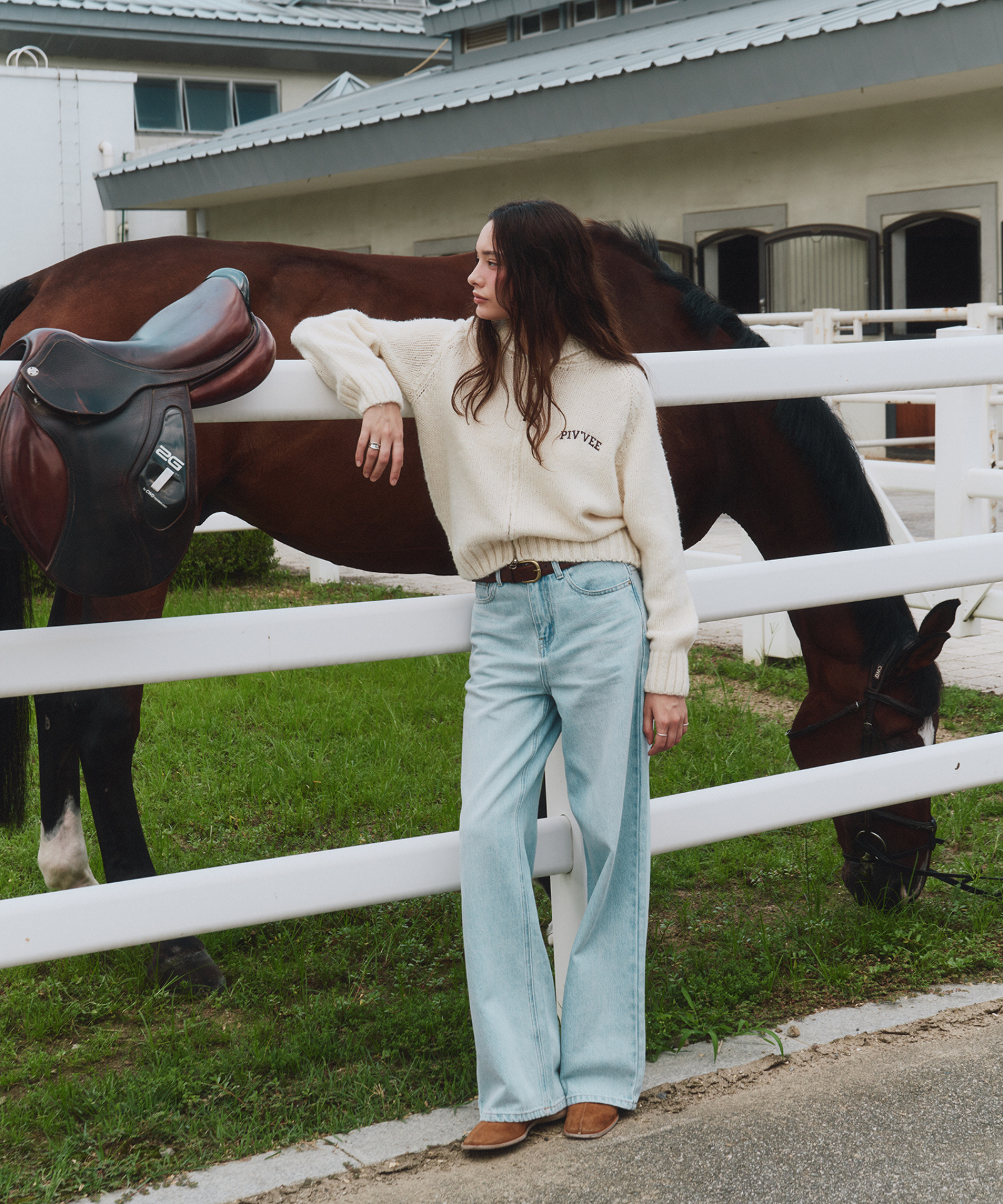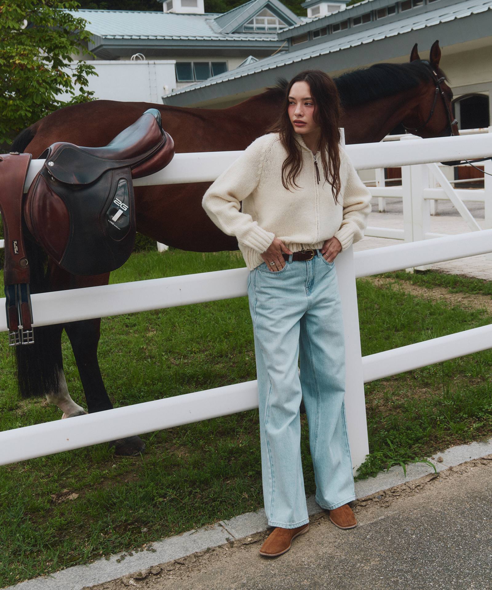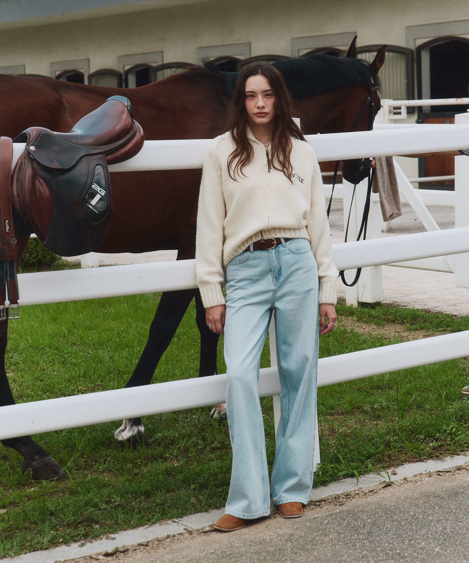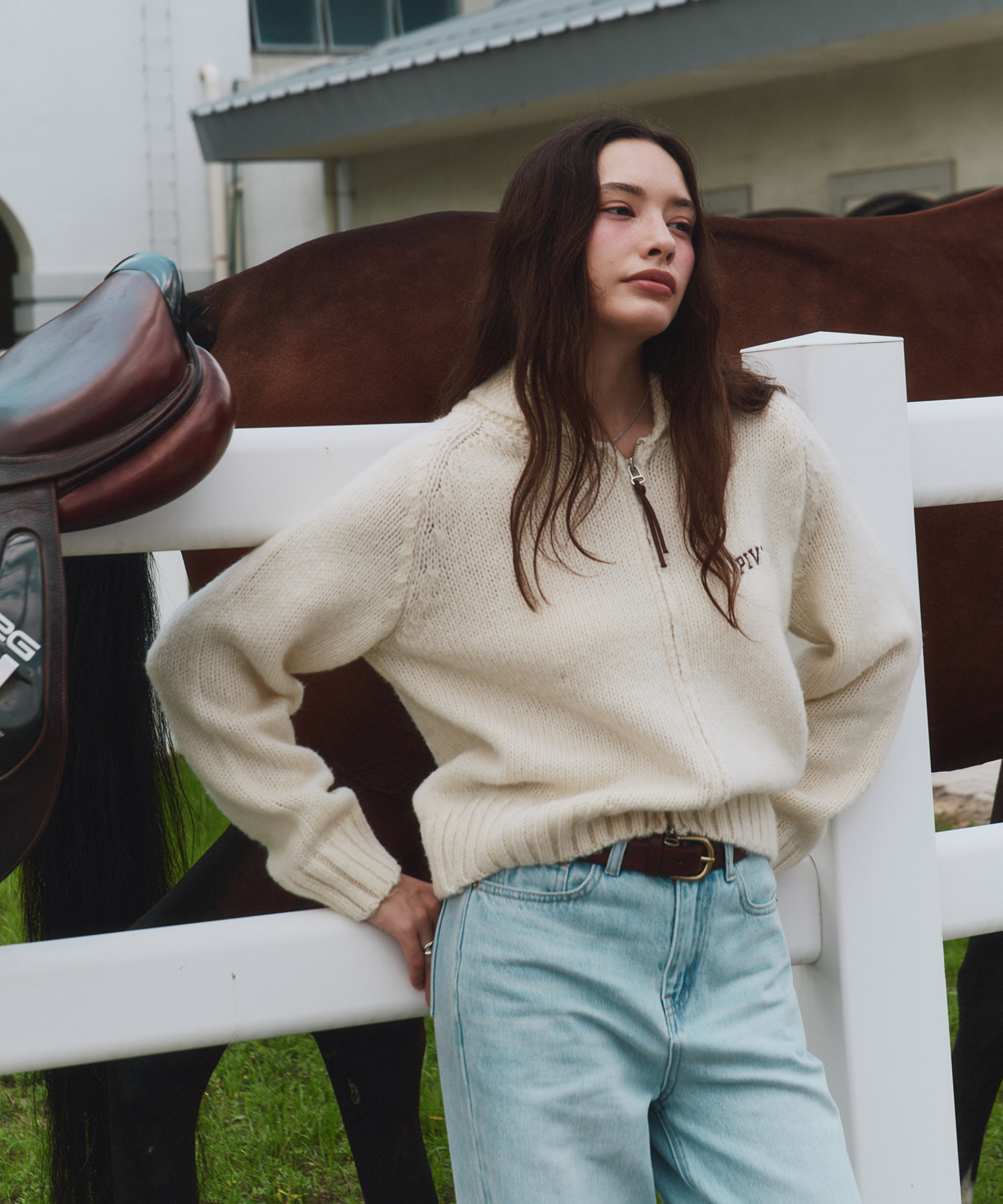 PIV'VEE Pony Jacquard Zip-up Cardigan Sand Beige