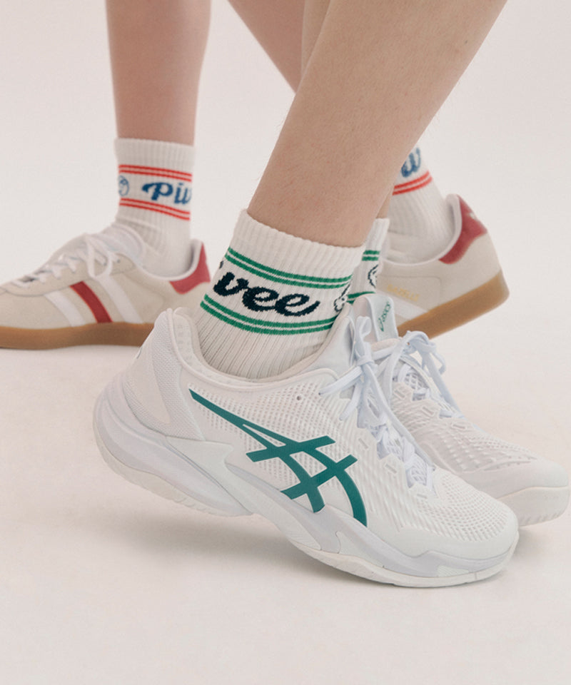 PIV'VEE Stripe Crew Socks - Cloud White/ Green