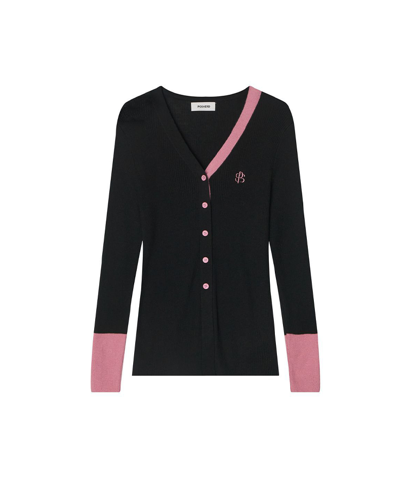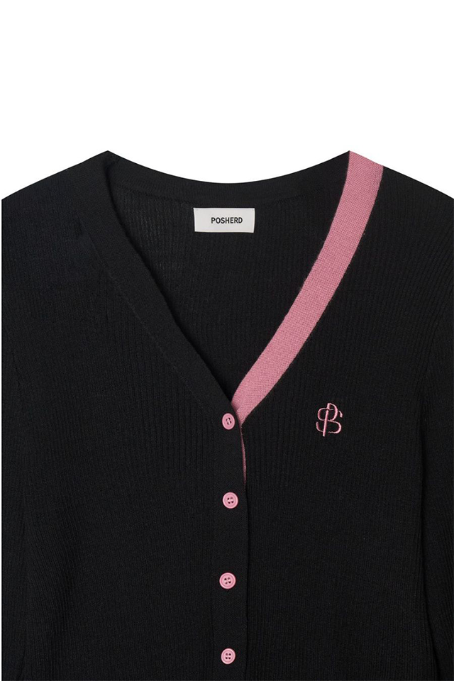 POSHERD Block V-Neck Knit Cardigan - Black | Timeless Elegance & Modern Comfort