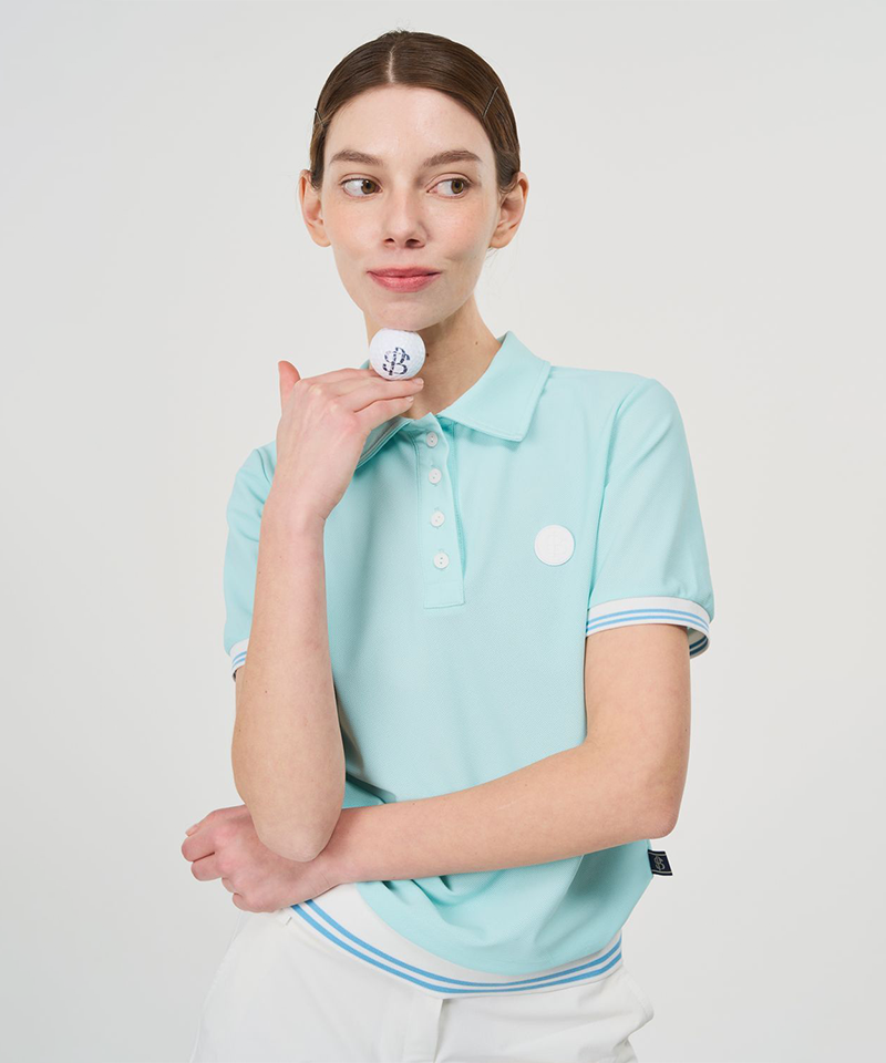 Make a statement with the CLING PK collar top, featuring fresh, bright colors and bold color-blocked stripe detailing for a sleek, stylish look. Crafted from soft, breathable mesh PK fabric, it offers all-day comfort while resisting wrinkles with its anti-crease functionality. Designed to layer effortlessly like a blouson, this top delivers a naturally polished silhouette that’s both versatile and on-trend. Finished with a modern silicone logo label and subtle side label, it’s the perfect blend of sporty elegance and everyday ease.