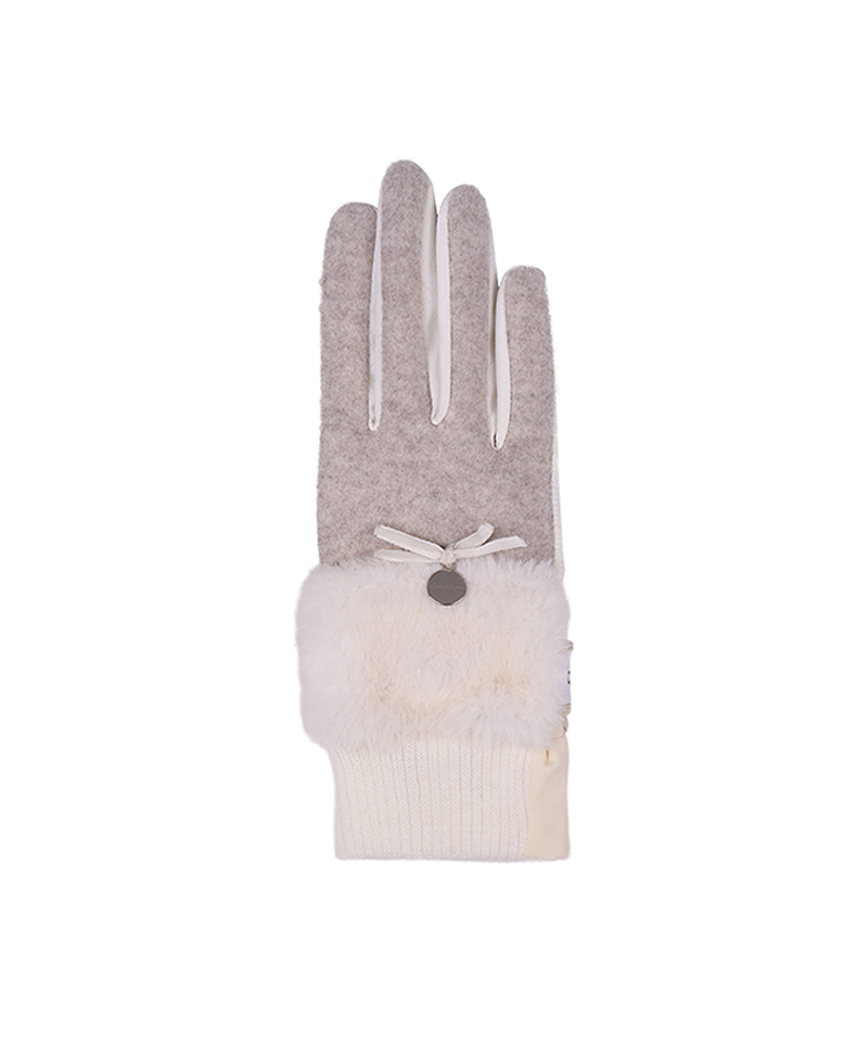Set5 Winter Neck Warmer + Embroidered Fleece Gloves- Beige