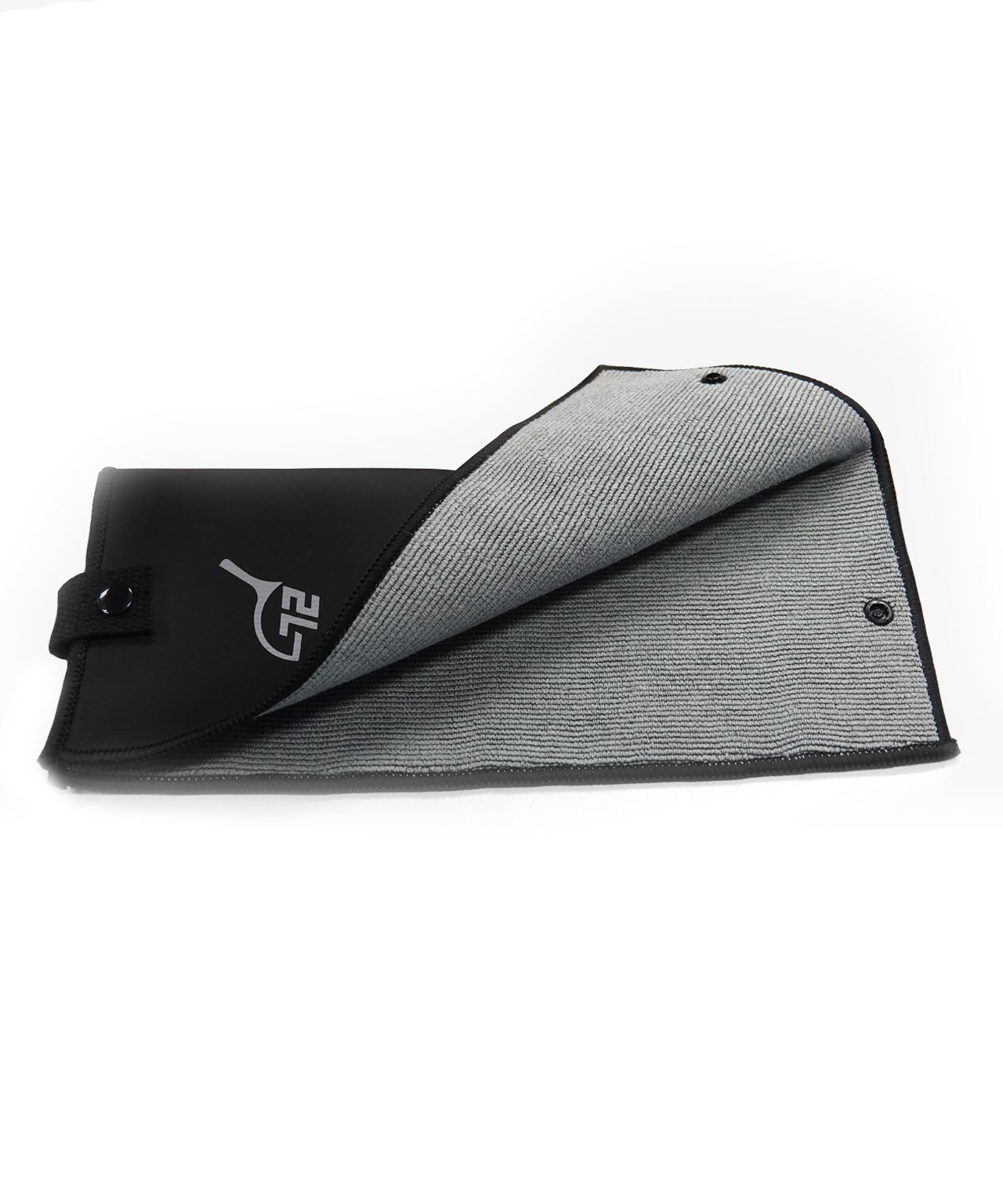 12. TOWEL (INTERIOR): interior can be dampened to easily clean club faces and golf balls.