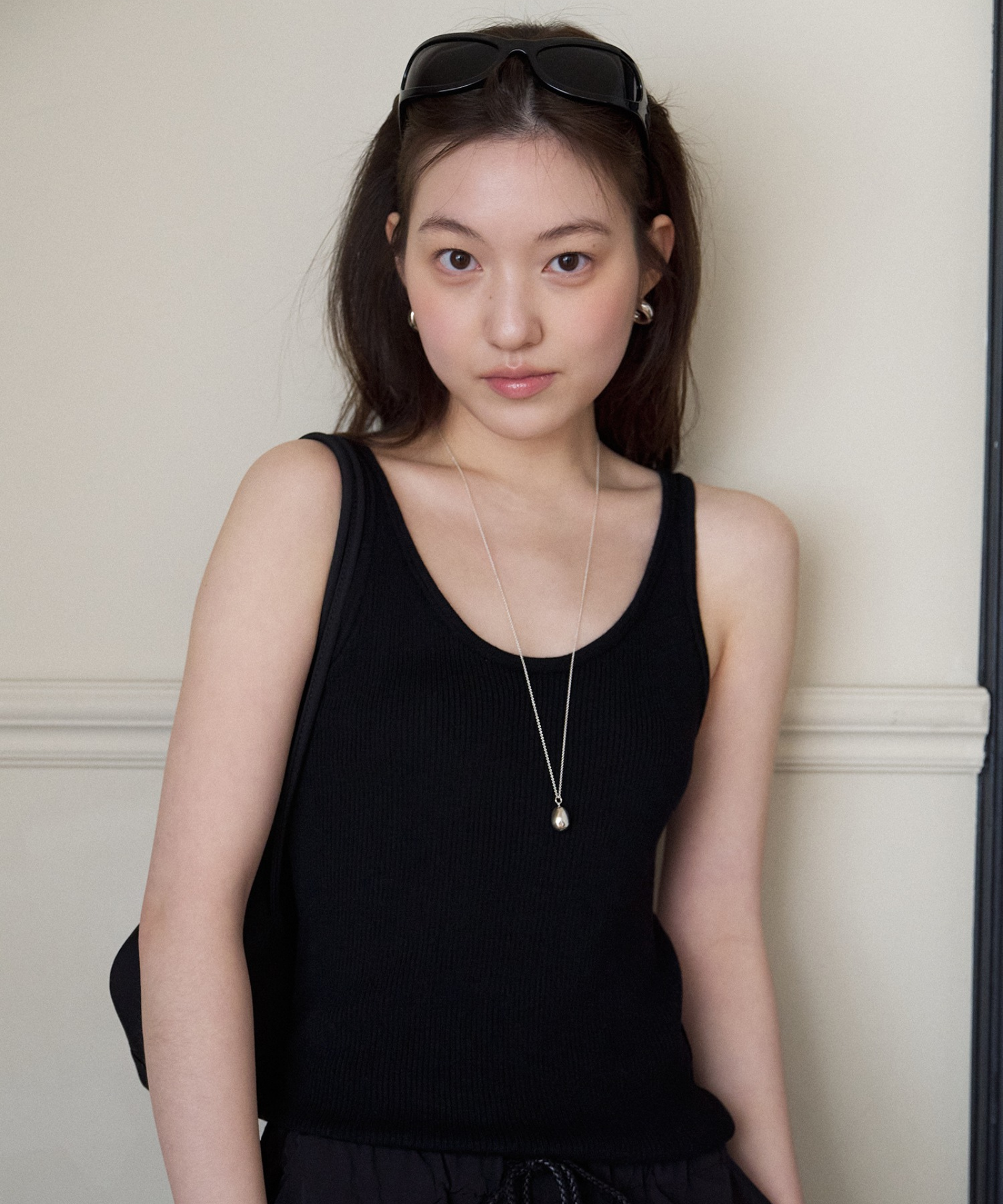 Sleeveless Knit Top – This soft-touch sleeveless knit top offers comfortable wear and excellent elasticity that naturally hugs the body, while delicate neckline details create a neat, feminine look. A versatile daily essential, it can be worn alone or layered for added style.