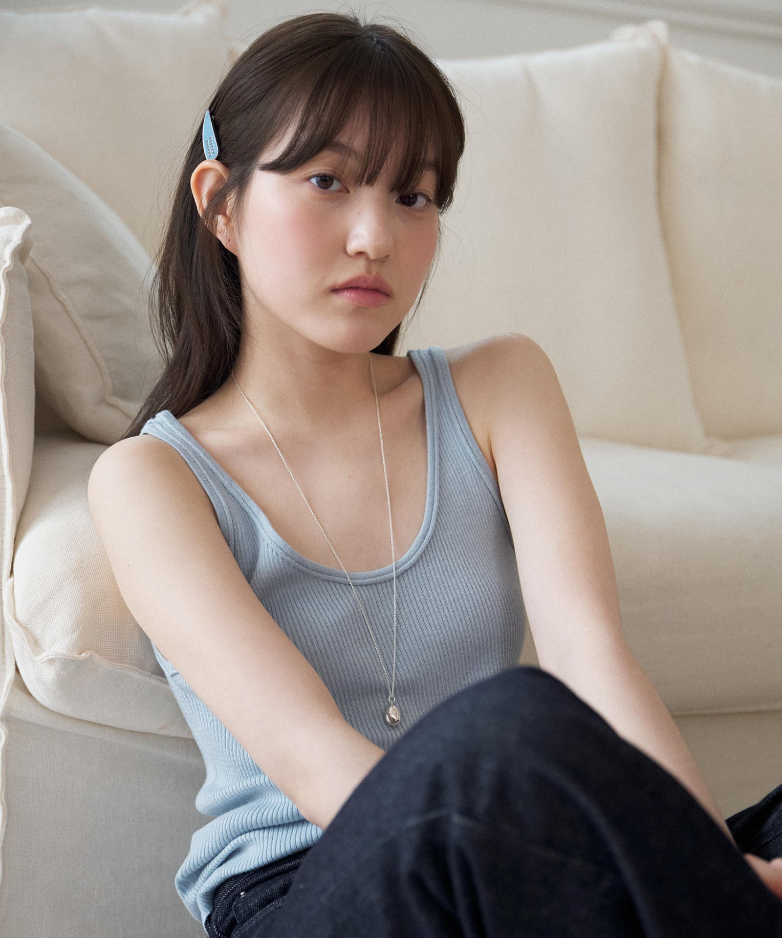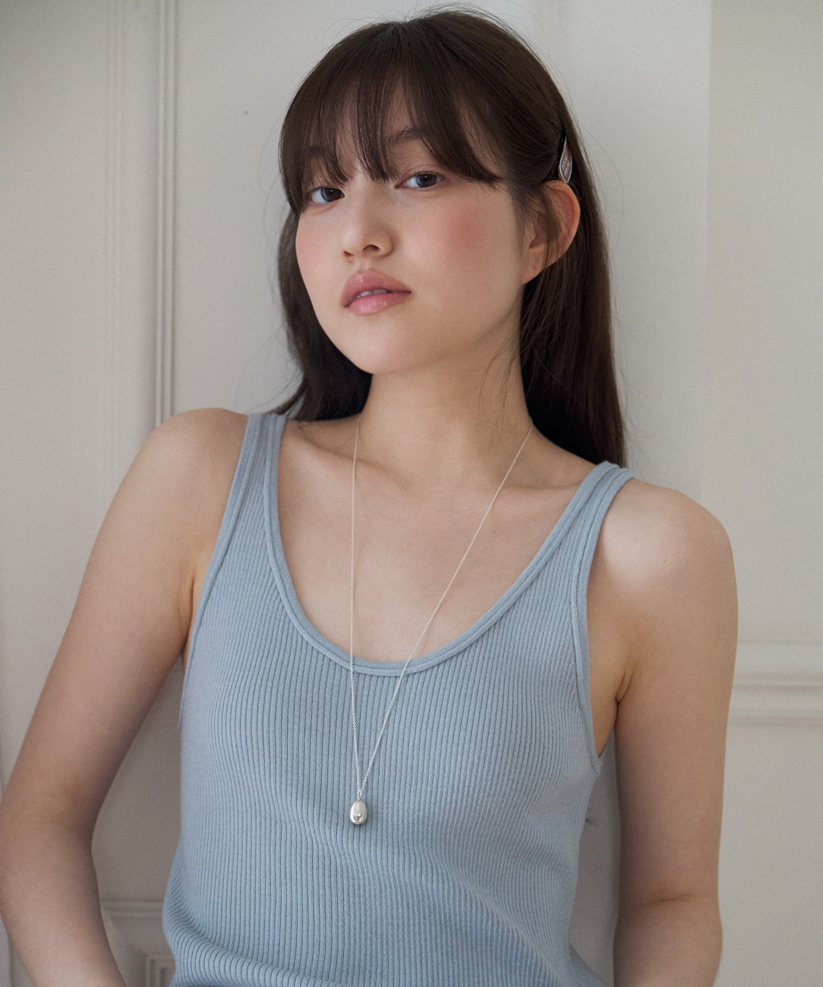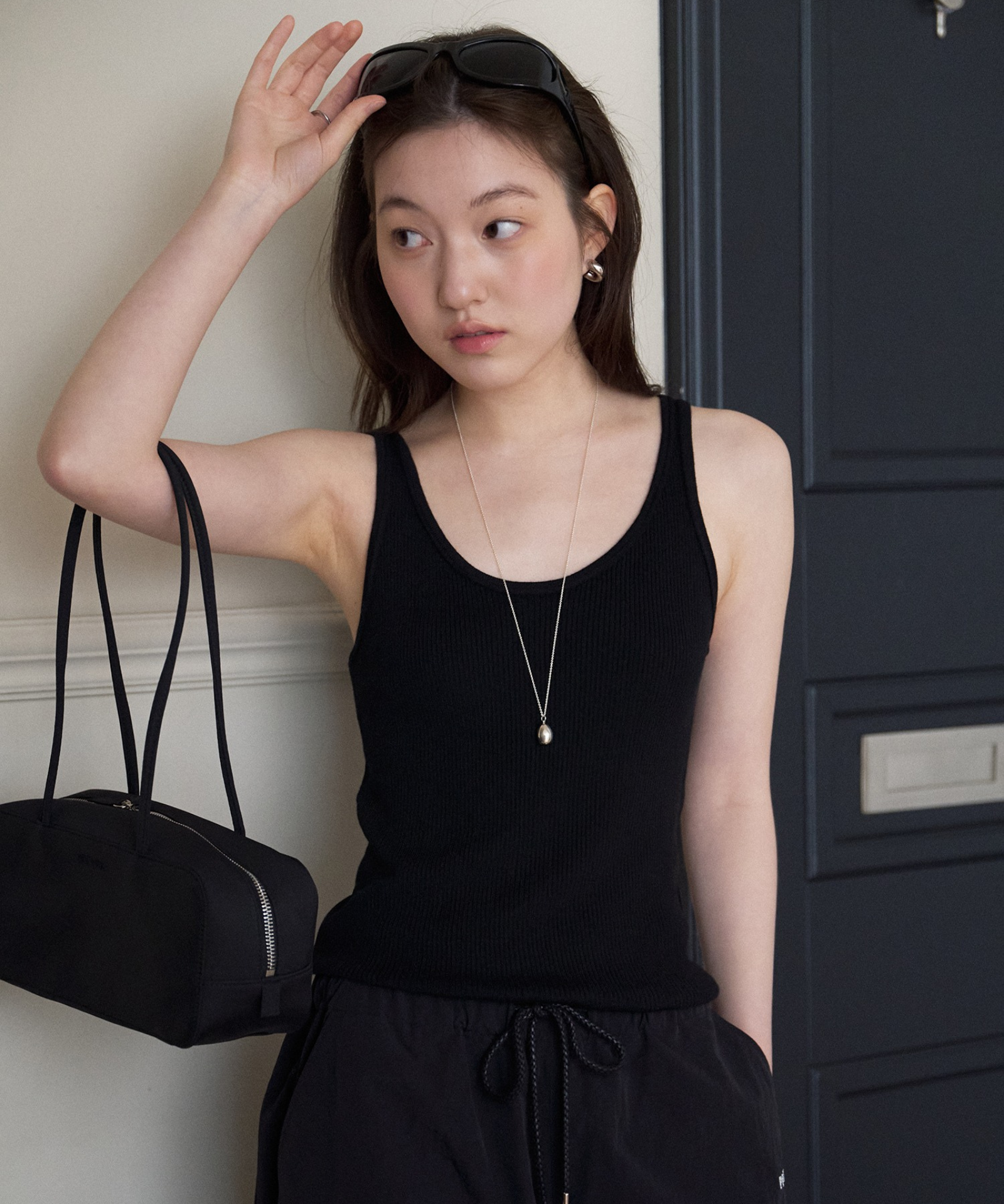 Sleeveless Knit Top – This soft-touch sleeveless knit top offers comfortable wear and excellent elasticity that naturally hugs the body, while delicate neckline details create a neat, feminine look. A versatile daily essential, it can be worn alone or layered for added style.