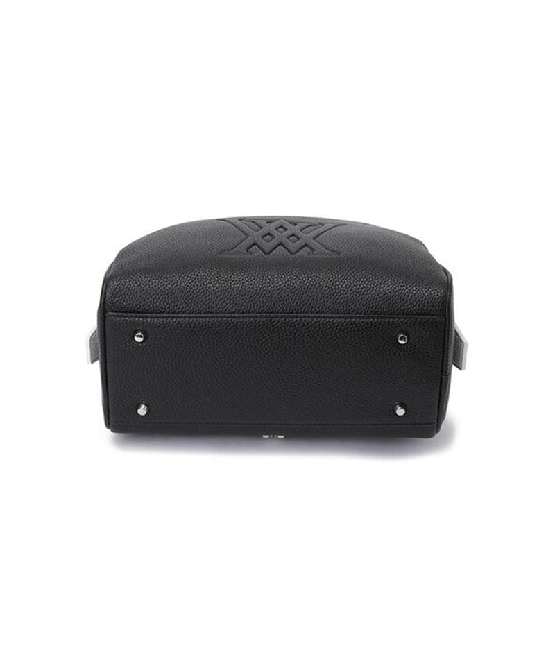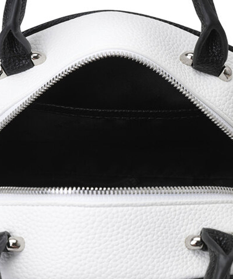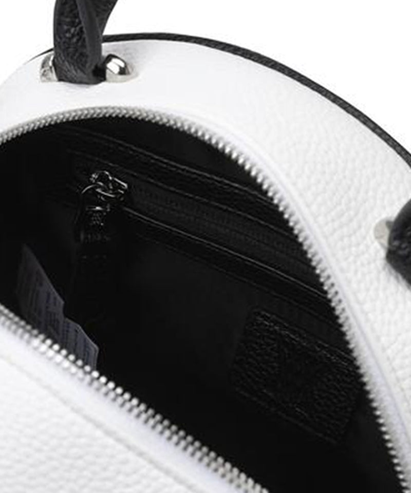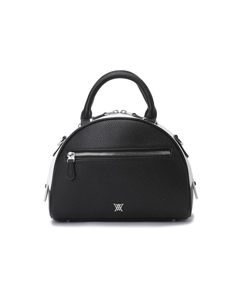 It is a small bag of a moderate size with a round shape zipper tote bag. It has a subtle stitch logo point. It has a shoulder strap with a logo jacquard pattern, so it can also be used as a shoulder bag.