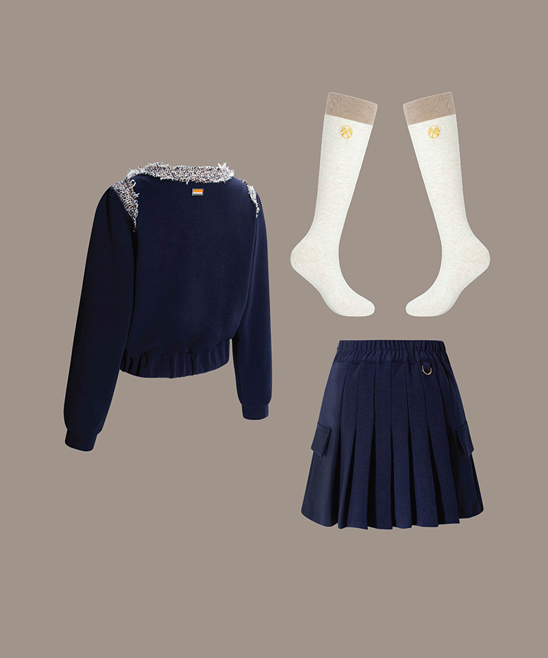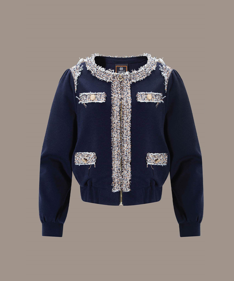 Tweed Jersey Blouson All-Coordinate 3pcs Set - Navy