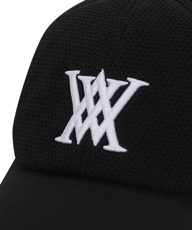 A neat style ball cap with a contrasting big logo embroidery on a winter jersey fabric (clothing fabric)