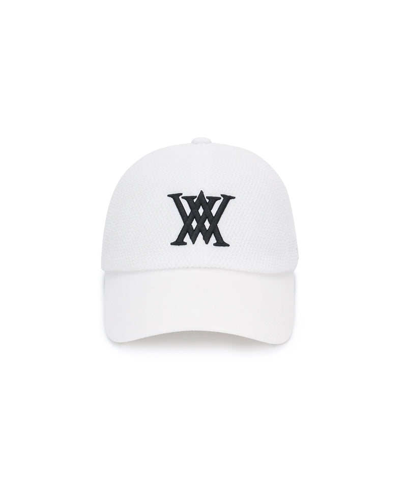 A neat style ball cap with a contrasting big logo embroidery on a winter jersey fabric (clothing fabric)