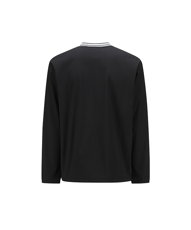 This is a long-sleeved round T-shirt made of fabric with excellent stretch and uneven texture.