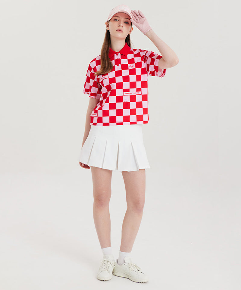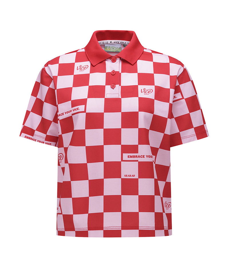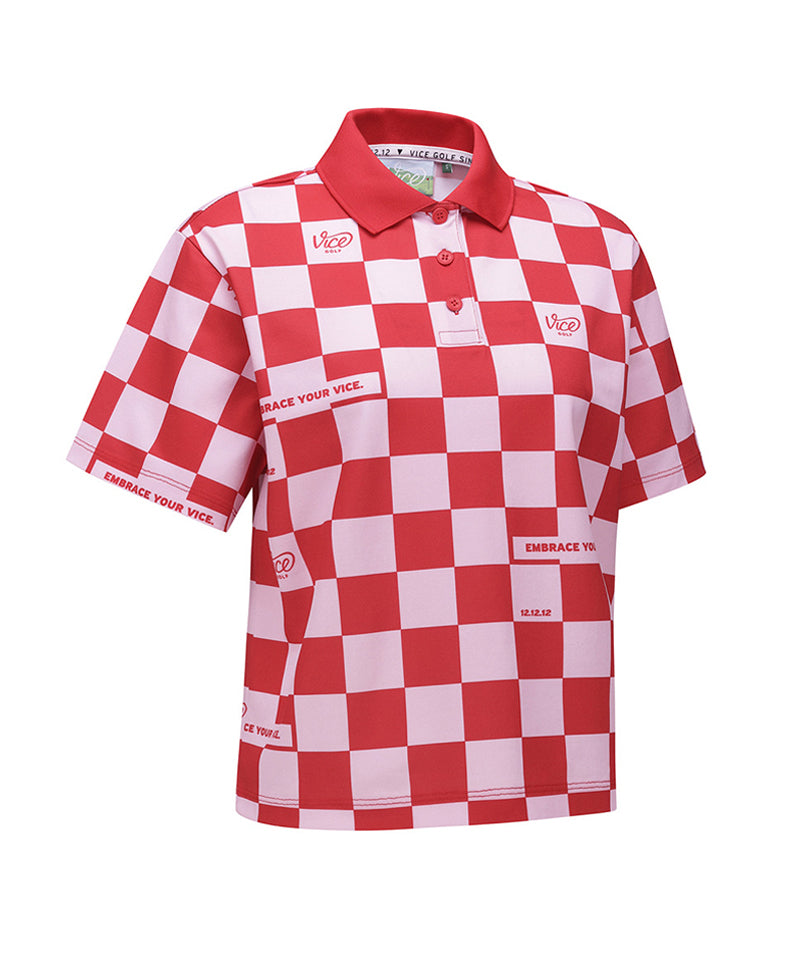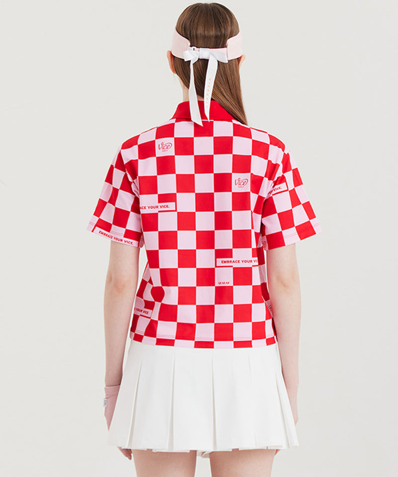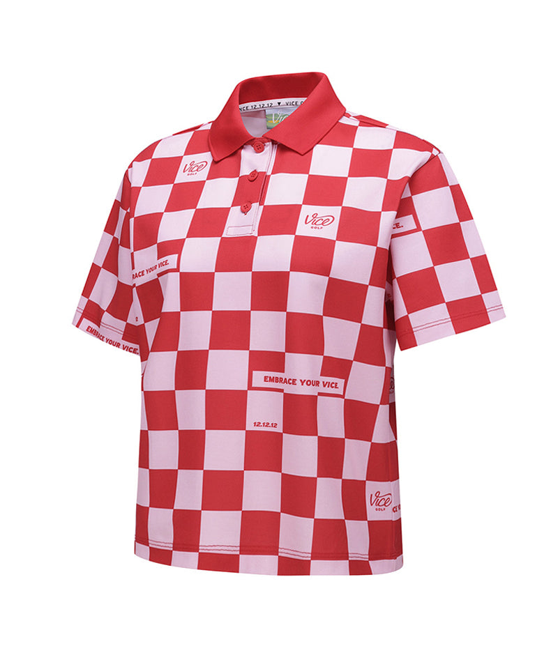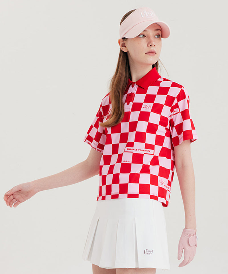 Vice Golf Atelier Women Checkboard Short T-Shirt - Red