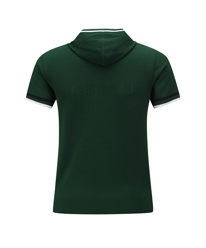This is a hooded short-sleeved knit pullover.