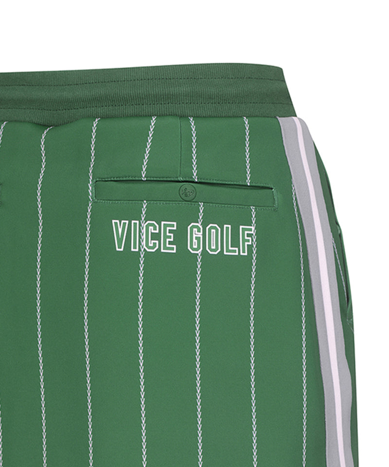 UPSTATE CLUB LINE's V pin stripe pattern and H-line pinstripe jersey skirt with the mood of classic sportswear. Inspired by the free culture of the New York metropolitan area, striped pattern artwork featuring VICE's V logo was used. You can feel comfortable wearing by using 4WAY stretch material with a soft touch. Striped knit tape on the side has a visually slimming effect. It further adds to VICE's unique street casual vibe.