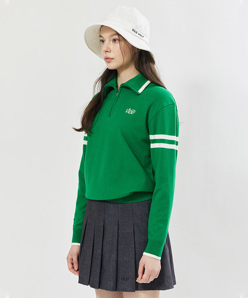 Vice Golf Atelier Women's Wide Collar Windproof Half Zip-Up Sweater - Green