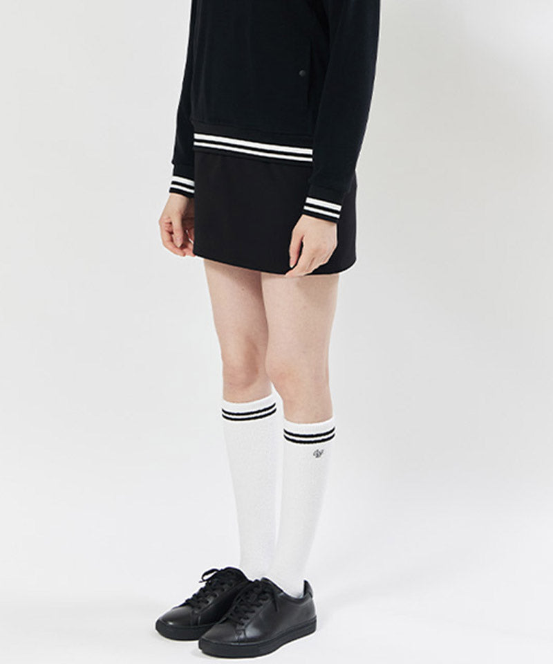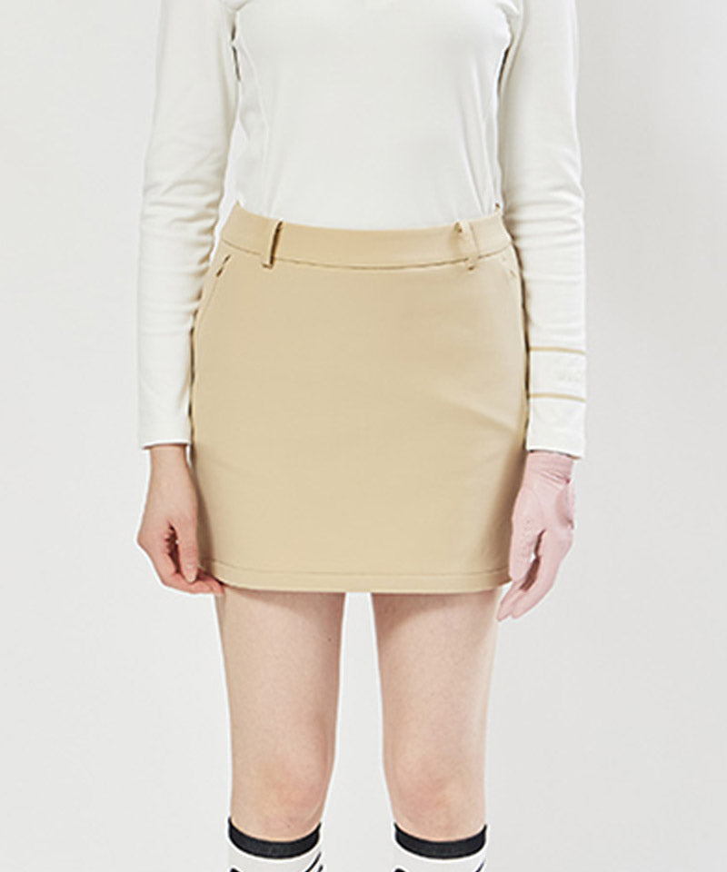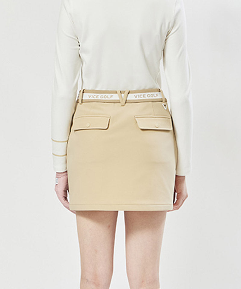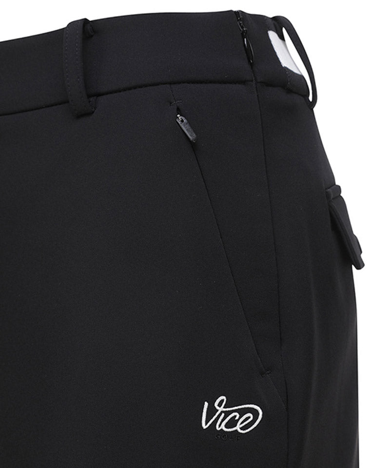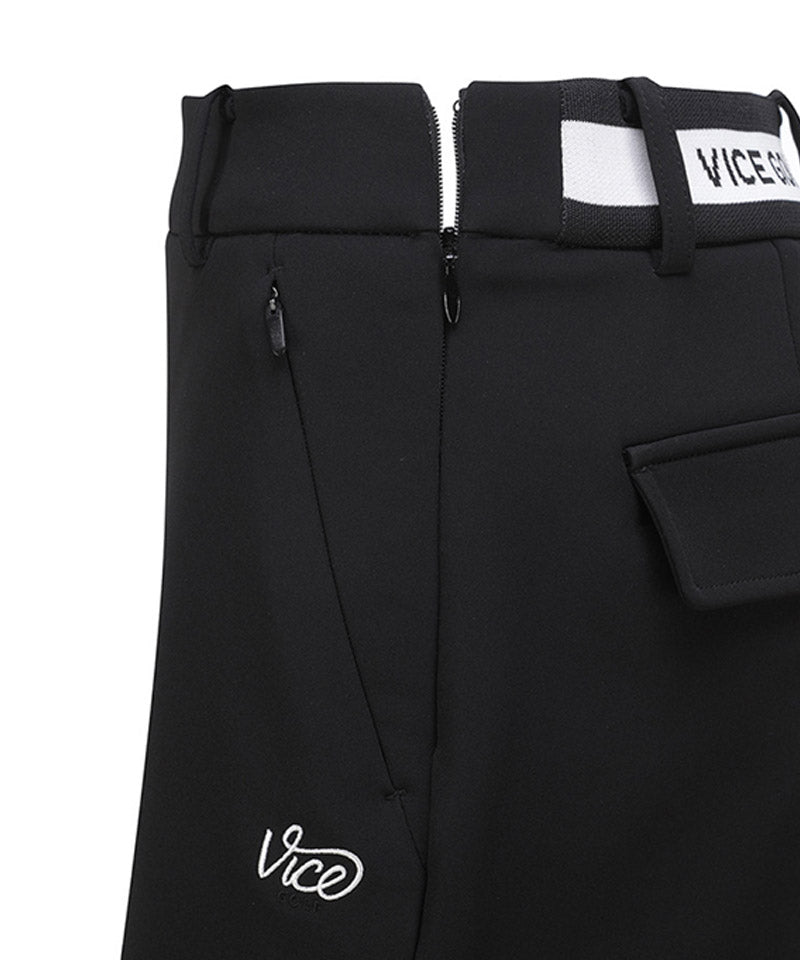 This is a bonded H-line skirt with the VICE GOLF logo on the back waist. The use of fabric with excellent stretch properties and the built-in band at the back waist makes it comfortable to wear. There is a front zipper pocket and a back pocket for easy storage.