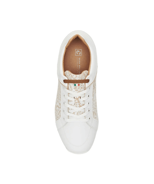 Our Caldes women's golf shoe is an all-day casual shoe that combines a feminine floral design with bold technical elements. The handcrafted, soft Italian nappa leather upper features suede trim for charming footwear on and off the course. This spike less design has great features like the soft and breathable ARNEFLEX® insole for all-day comfort and heel support, and a waterproof sock system with OnSteam® recyclable microfiber.