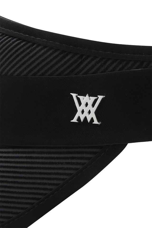 This wide visor features a mixed round detail for a stylish look. The rivet decoration on the front cut line adds a neat point, while the ribbon detail at the back enhances its feminine charm.