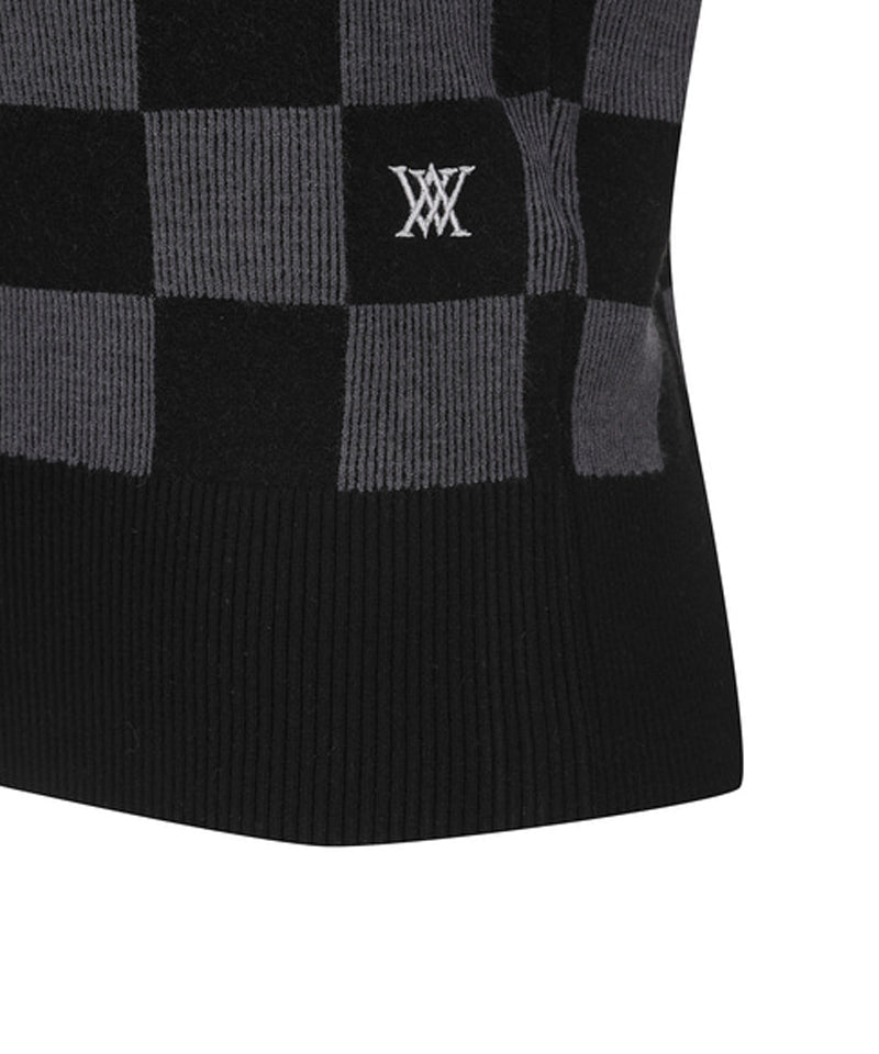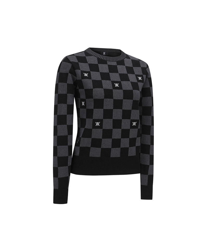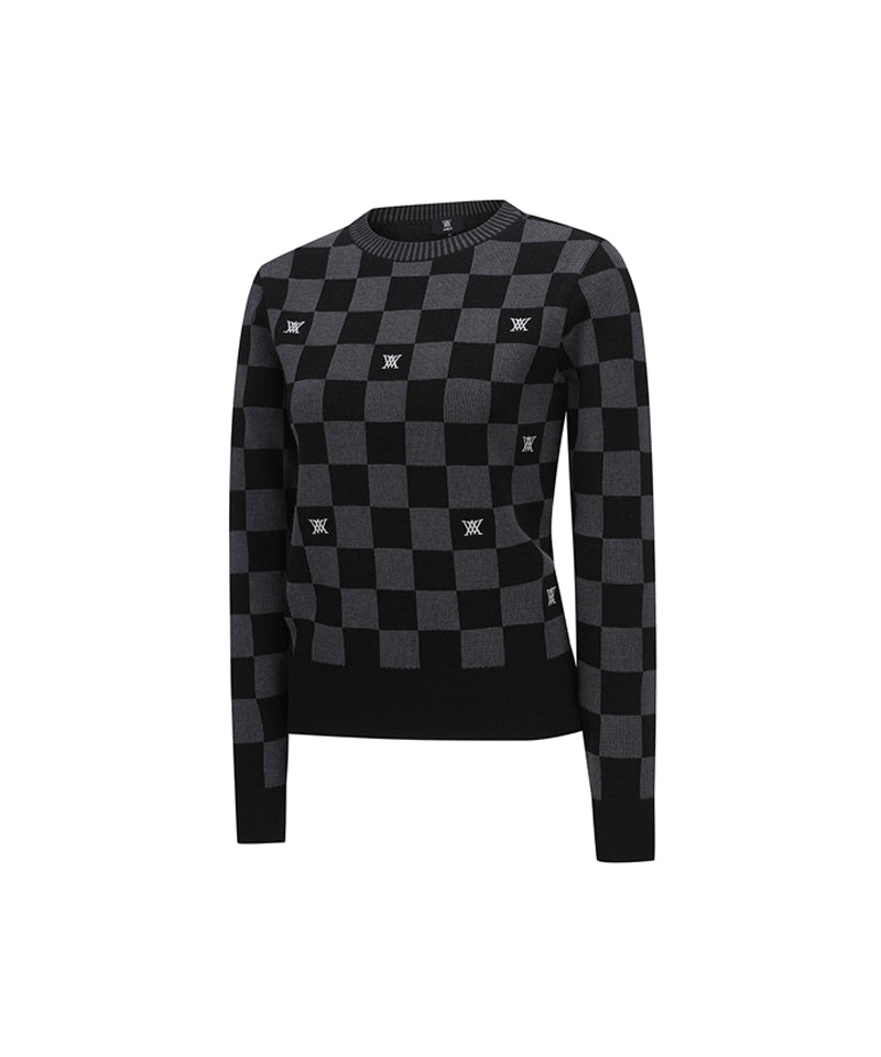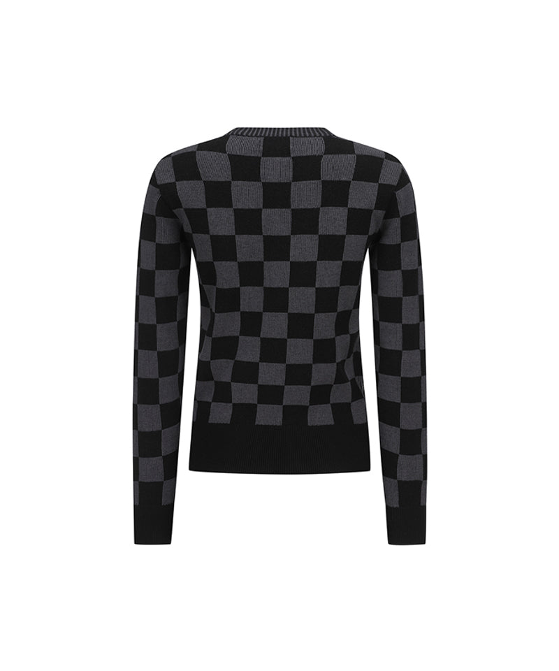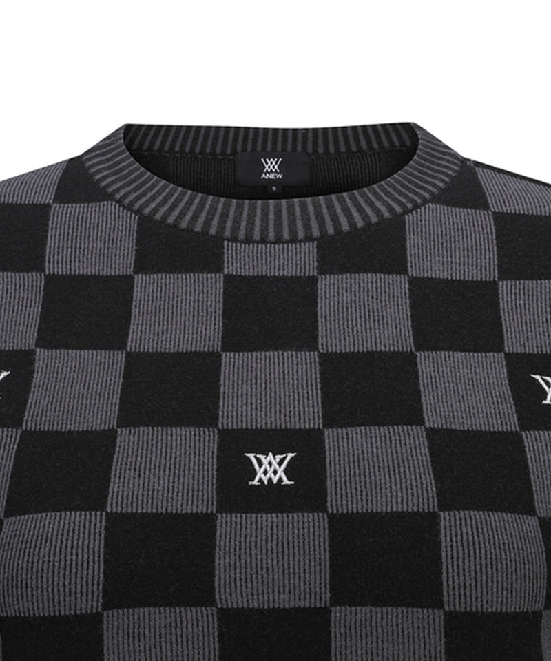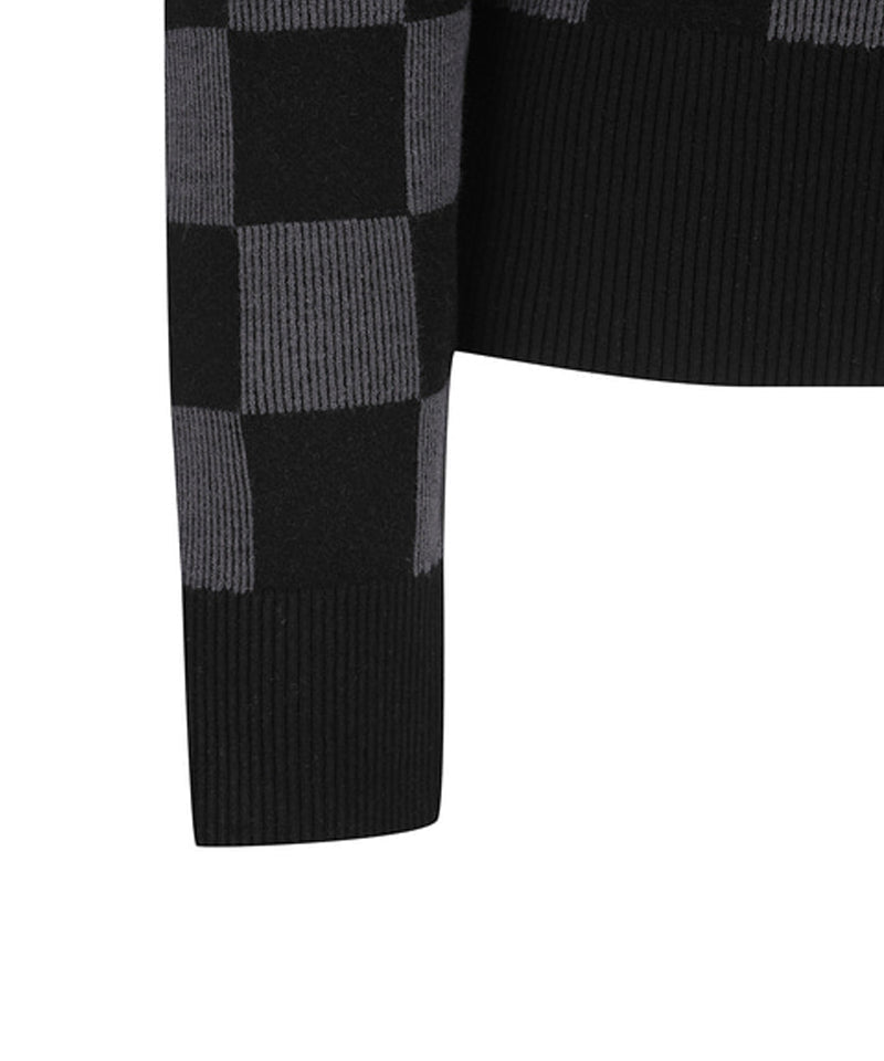 This is a knit pullover with a checkerboard pattern knitted with soft viscose yarn with a nijou texture. The small size of the new symbol is subtly embroidered, making it simple but a focal point. This is an item. Tone-on-tone color scheme allows for wear in both the field and everyday life.