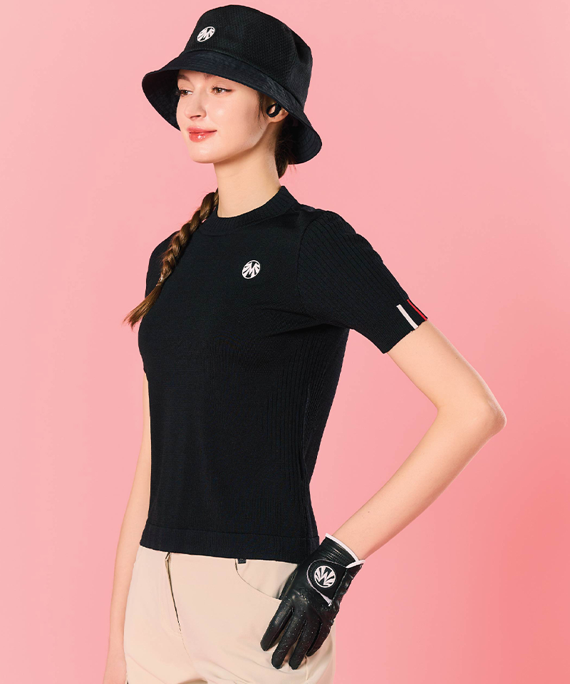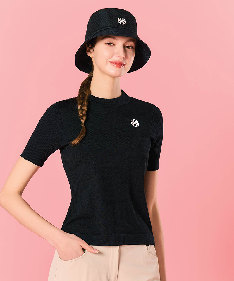Women's Cooling Yarn Back Slit Round Knit - Black