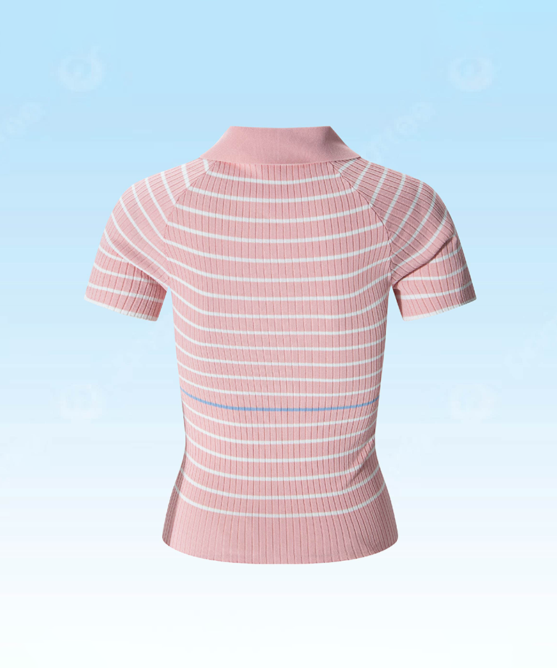 Lightweight and pleasantly non-clingy, this knit top is crafted from a comfortable, skin-friendly fabric that feels airy and fresh against the body all day long. Four-way stretch yarn and advanced knitting techniques provide exceptional flexibility in every direction for an effortlessly comfortable, unrestricted fit. High-spandex rib knit construction hugs and follows the natural body line beautifully, creating a sleek, naturally flattering silhouette with excellent shape recovery that keeps you looking polished from morning to evening.