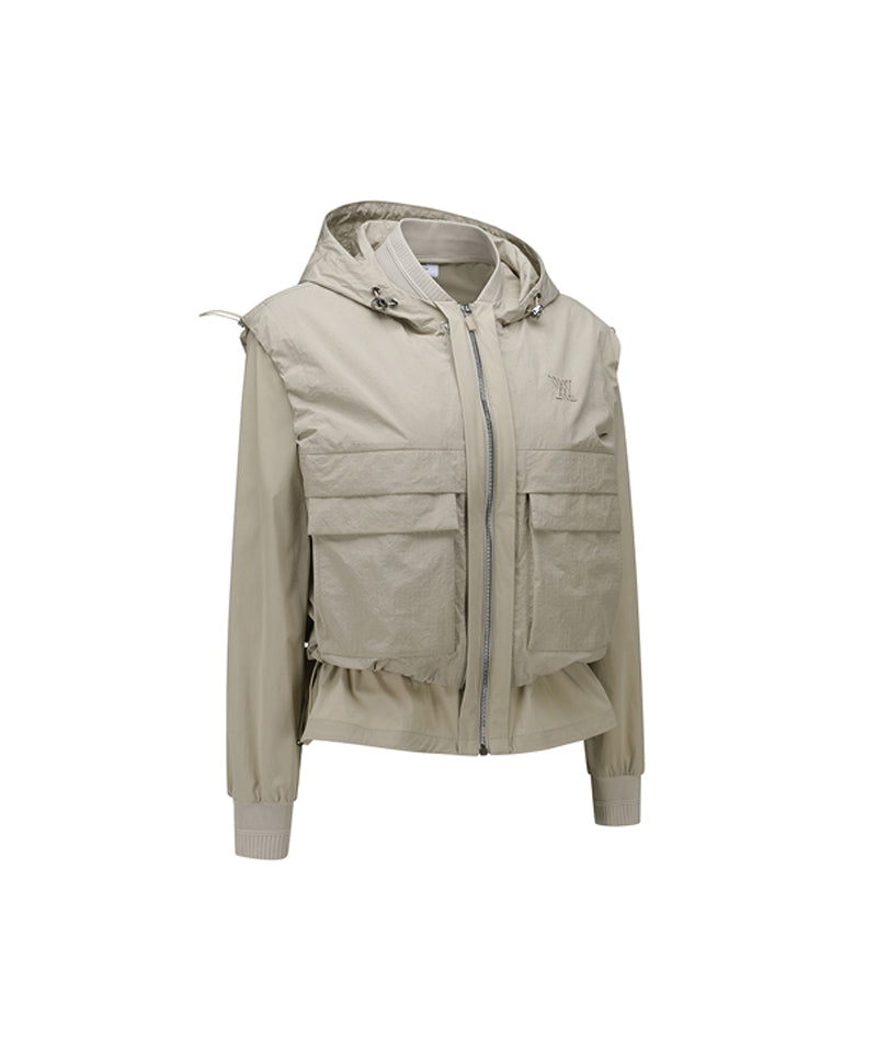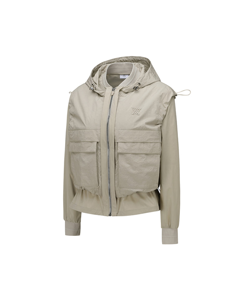 This is a 2-in-1 windbreaker that can be used in a variety of stylish ways for golf and everyday life. The outer shell is made of a ribbed material with a subtle gloss to add a casual mood, and the inner shell is made of a ribbed material with a subtle sheen.