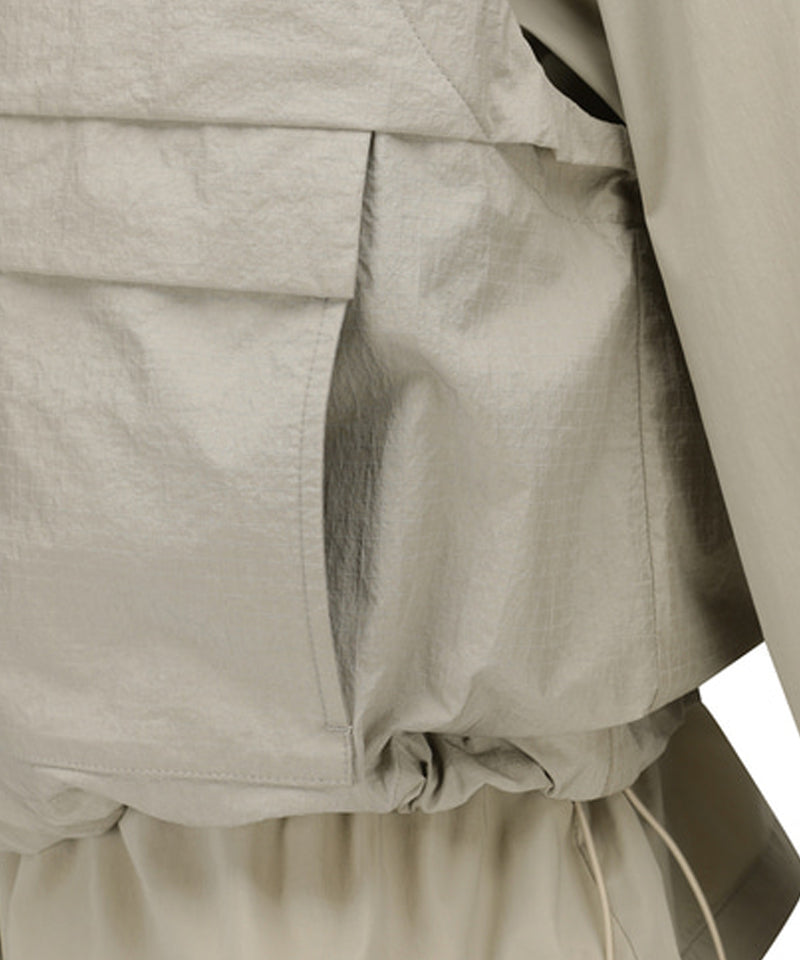 Nylon spandex material is used to ensure a comfortable fit when swinging. Pocket on the outer shell. It is easy to store as it is plentiful, and the relaxed fit allows for a variety of looks even when worn separately as a vest. It is possible and there is a string at the waist of the lining to create a feminine look.