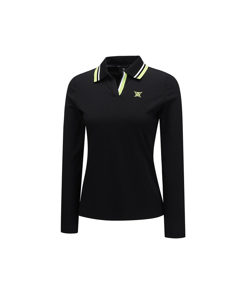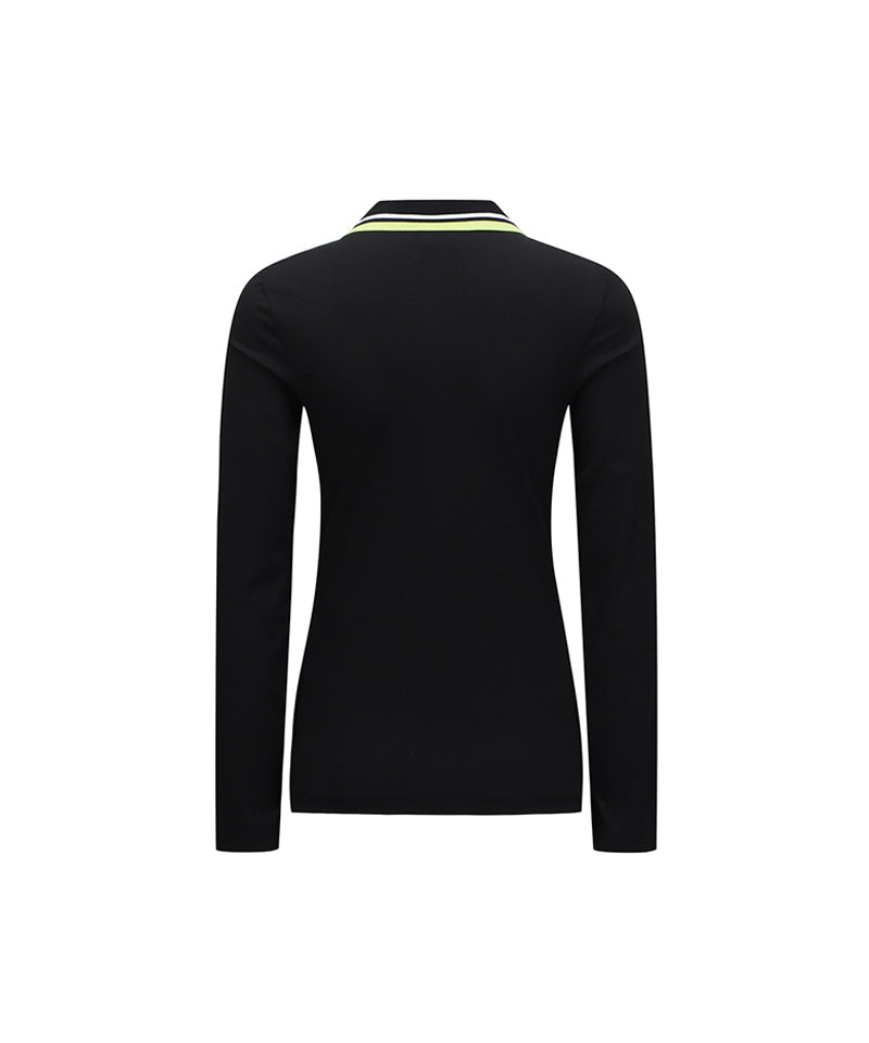 This is a long-sleeved t-shirt with ribbed material on the front and knit parts for added delicacy. Golgi The material is soft and elastic and fits perfectly to the body, creating a feminine silhouette. It emphasizes and provides a comfortable fit. The collar and single knit parts are black/white and A variety of monotone and seasonal colored bottoms are mixed using vivid seasonal colors as tipping.