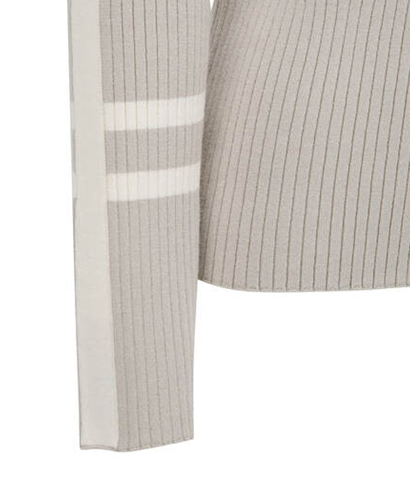 This is a women's essential bone pullover with a full bone pattern. This item has contrasting color lines on the shoulders and sleeves as a point. This bone pullover is made of soft yarn, so it can be used as an inner layer in various seasons,