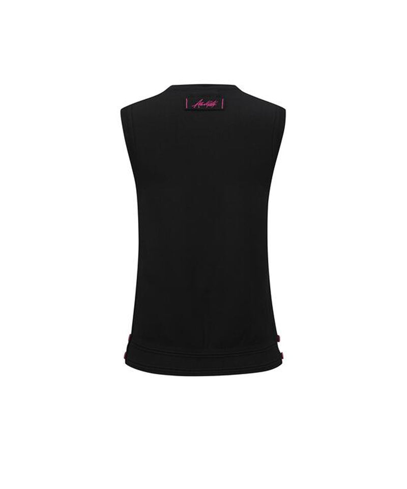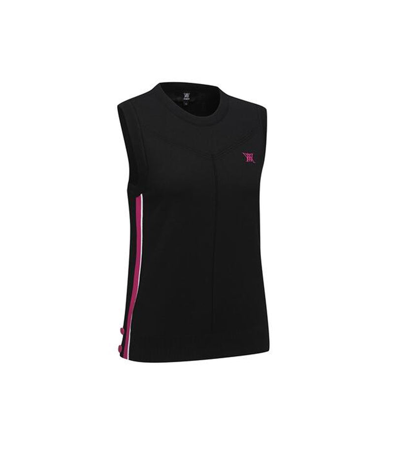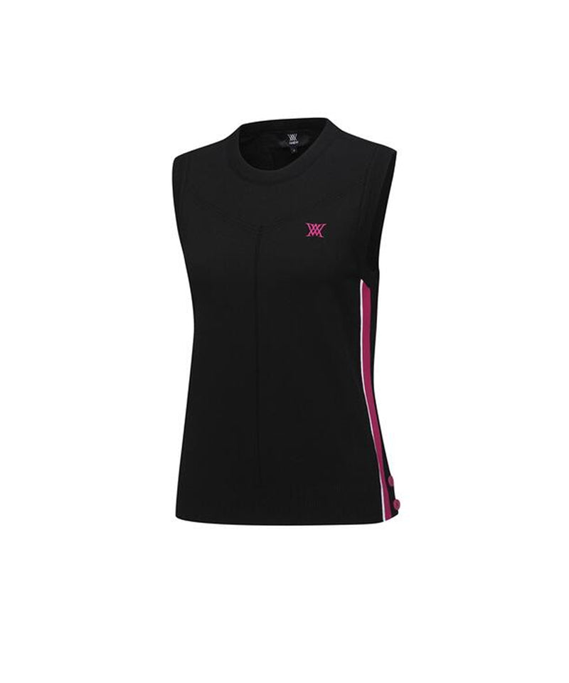 This is a light and warm women's round neck essential knit vest made with rayon yarn. It has multiple color point color combinations, making it easy to coordinate with various inner items. It is an item that can be comfortably adjusted and worn with trims and buttons at the bottom.