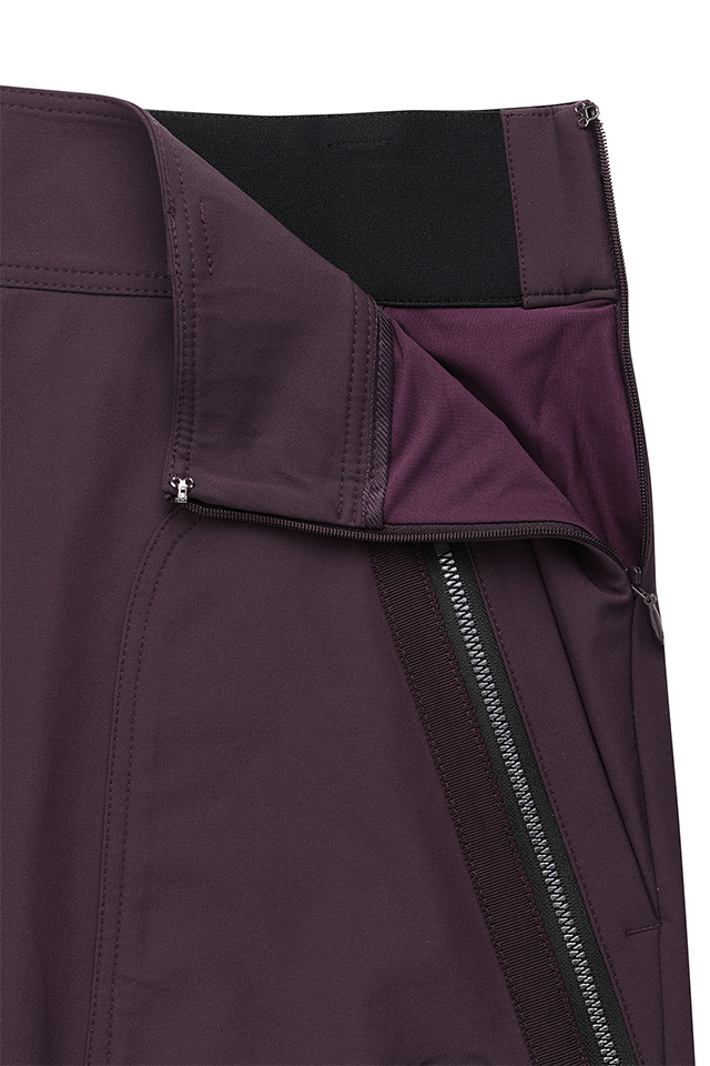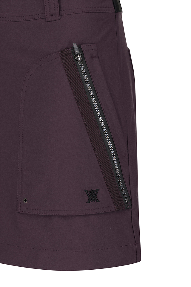 This A-line skirt features a modified cargo style. The wide waistband provides a secure fit, while large pockets on both sides add practicality and design flair. The voluminous pockets naturally complement the figure, while the zipper and metal accents create a sporty mood.