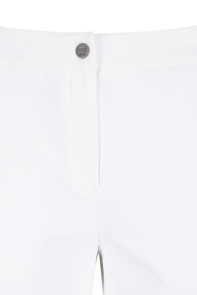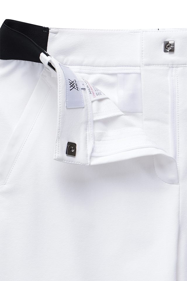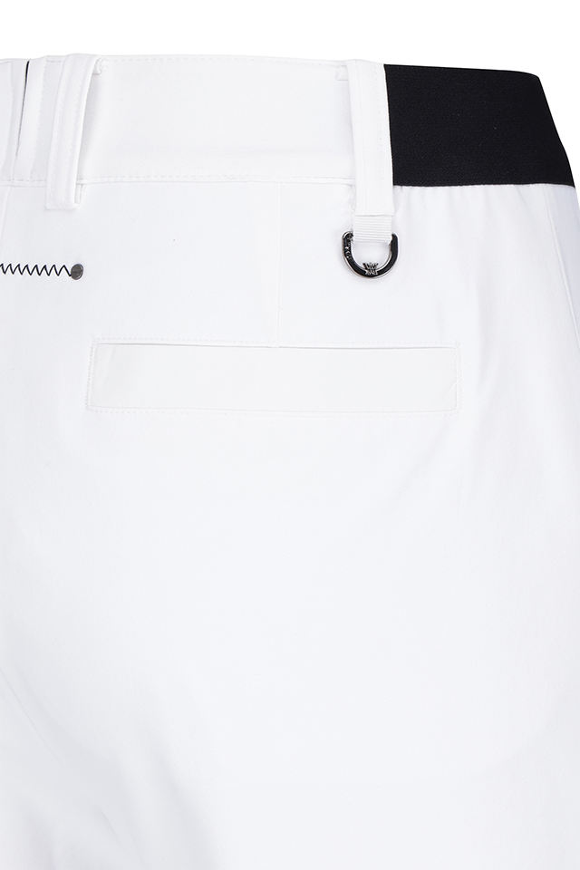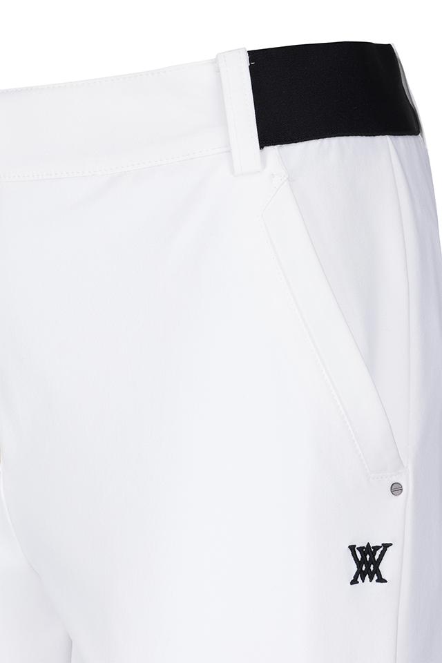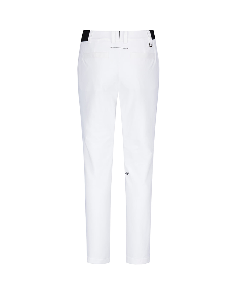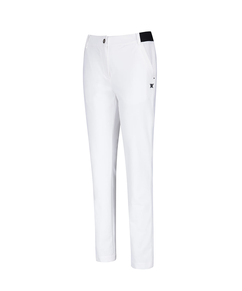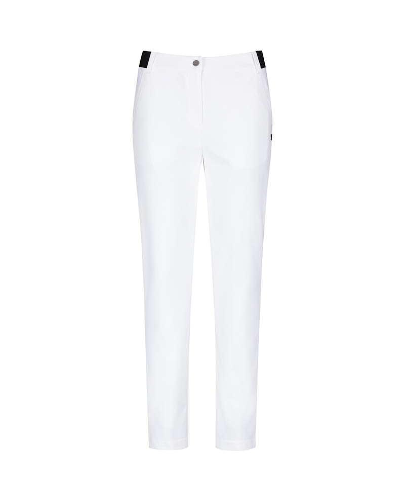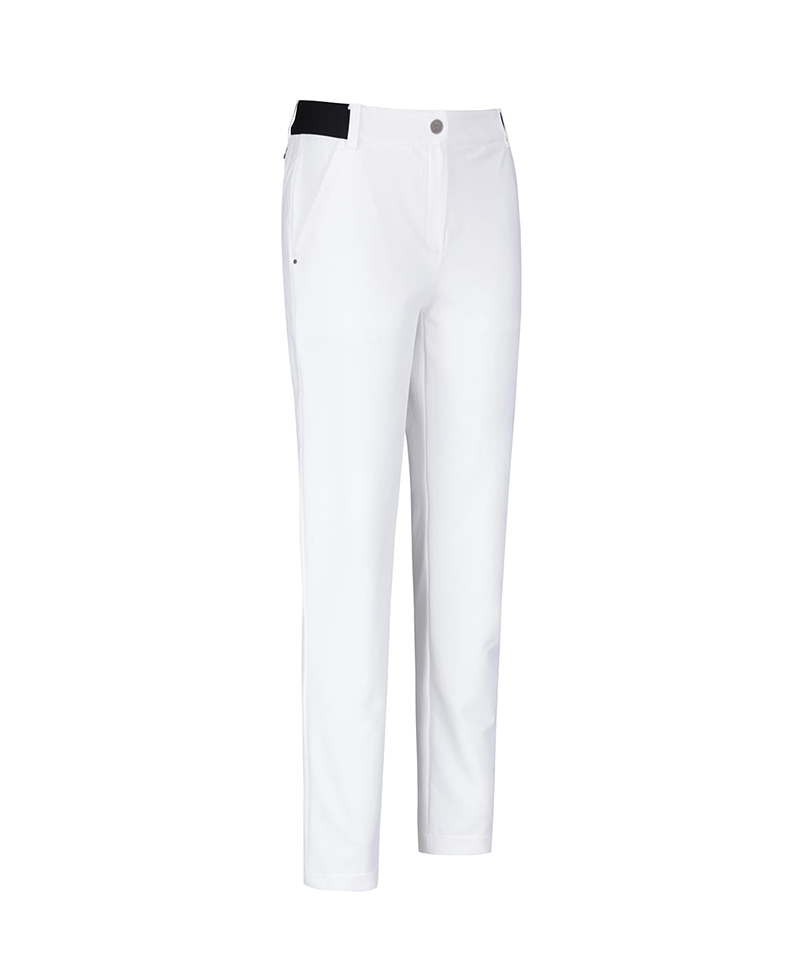 Made of woven material with excellent stretch for a comfortable fit Standard fit pants, with contrasting fabric pockets and back mid-hip pockets The zigzag stitch adds a sophisticated touch and goes well with a variety of monotone tops. A stylish item that is easy to match.