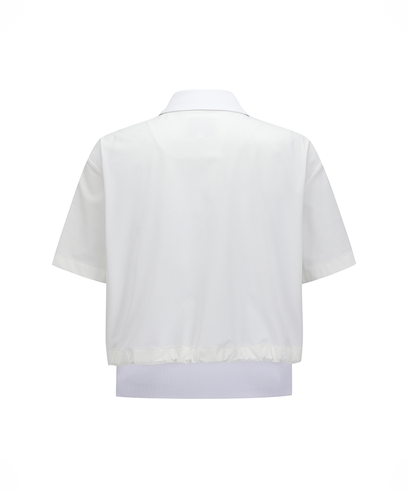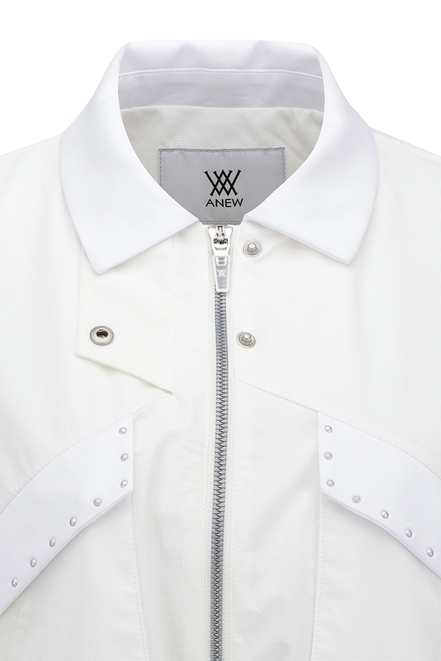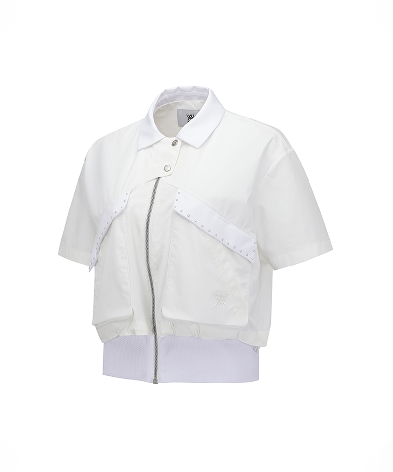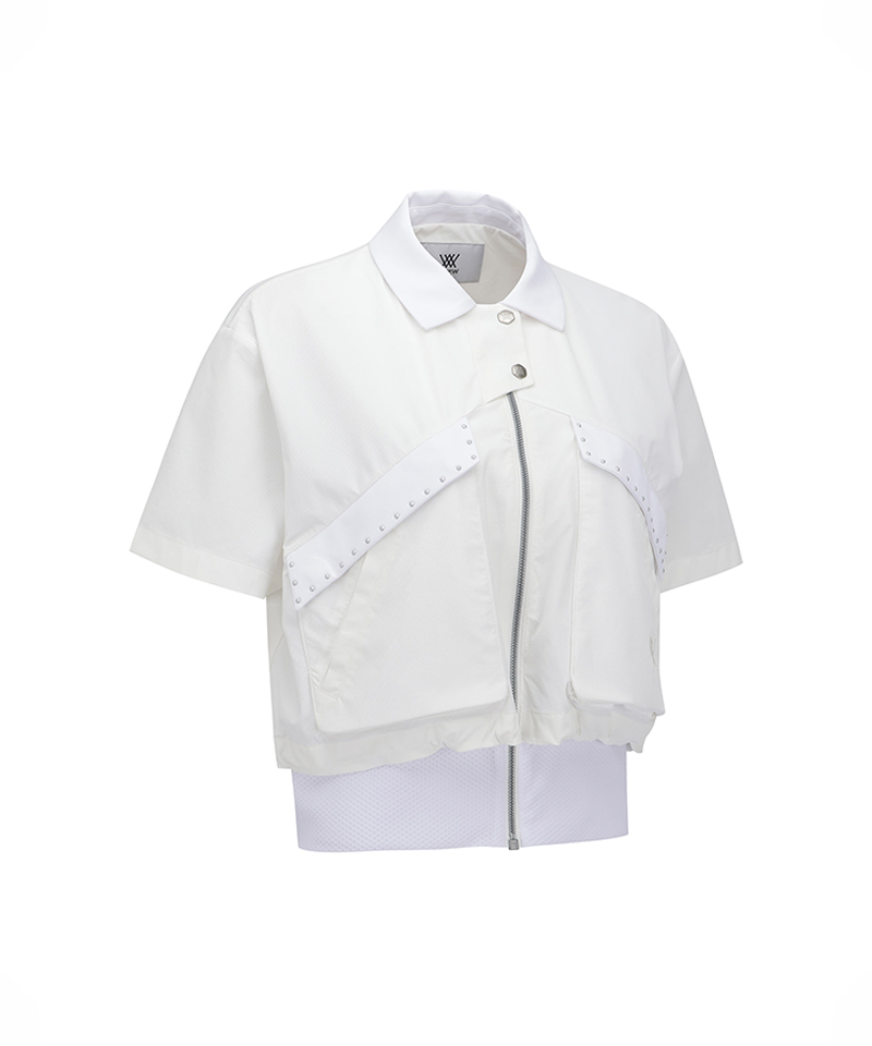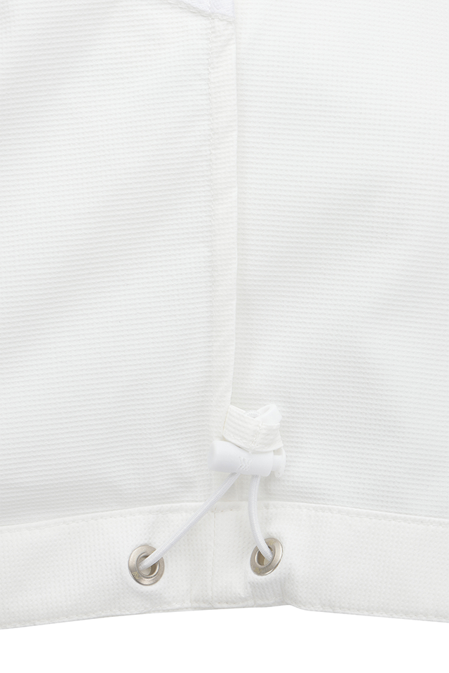 This half-sleeve outerwear piece is crafted from functional fabric, making it ideal for mid-season wear. Designed with practicality in mind, it features outer pockets accented by hotfix details, adding a refined touch suitable for both active and casual settings. The relaxed silhouette and subtle drawstring enhance mobility while providing a flattering, natural shape. Versatile and stylish, it pairs effortlessly with various inner layers for a complete, layered look.