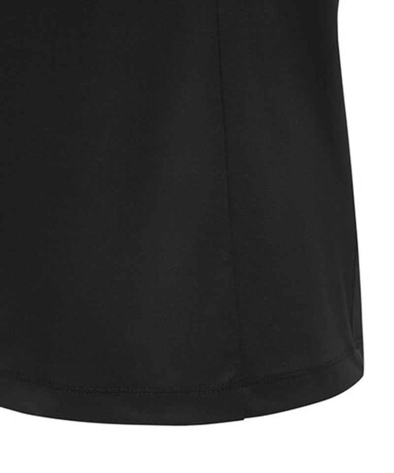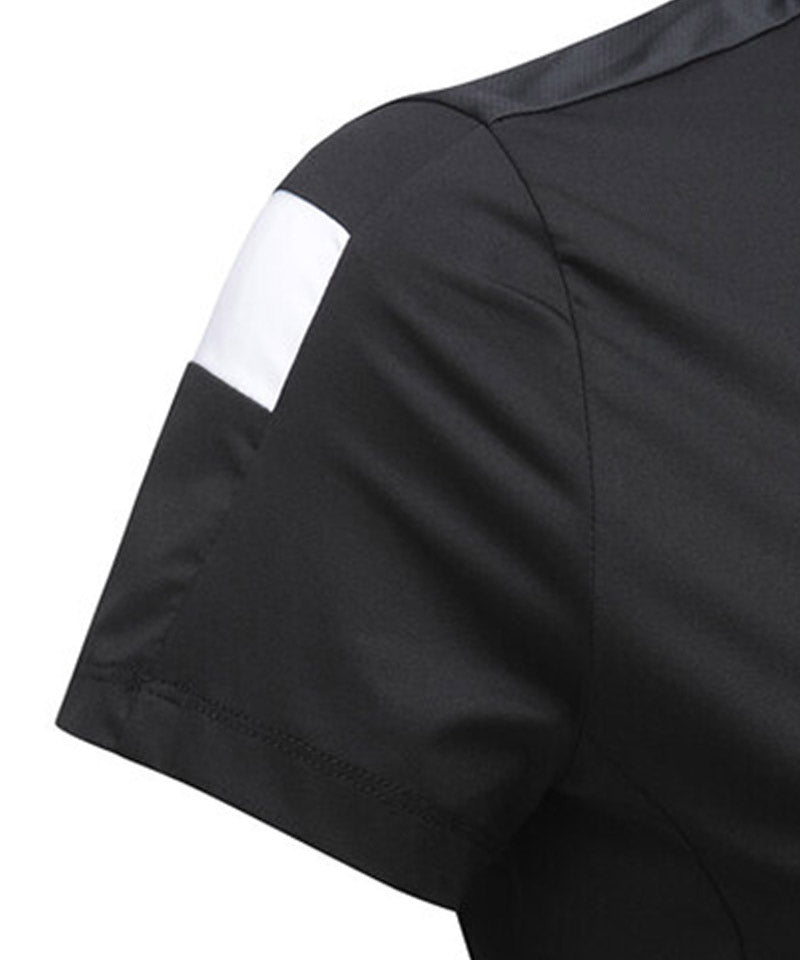 A special ice dot print is applied to the inner side of the back fabric with small perforations. This is a standard-fit T-shirt that can be worn coolly and comfortably in the middle of summer. The black and white color combination allows for a variety of bottoms and coordination and can be worn at the sleeves. Color details were added to the fuselage line where the back plate goes over to give it a point.